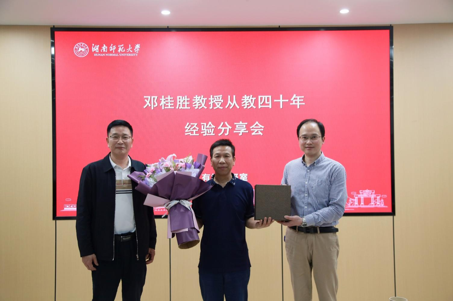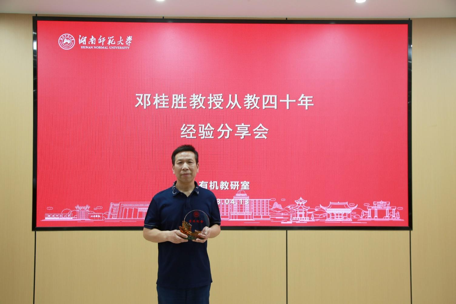 4月13日下午,英国365集团有机化学教研室在222报告厅举办邓桂胜教授从教四十年经验分享会。院领导谭东波、谭亮、宋建新、谭蓉及有机化学教研室全体成员参加了分享会。