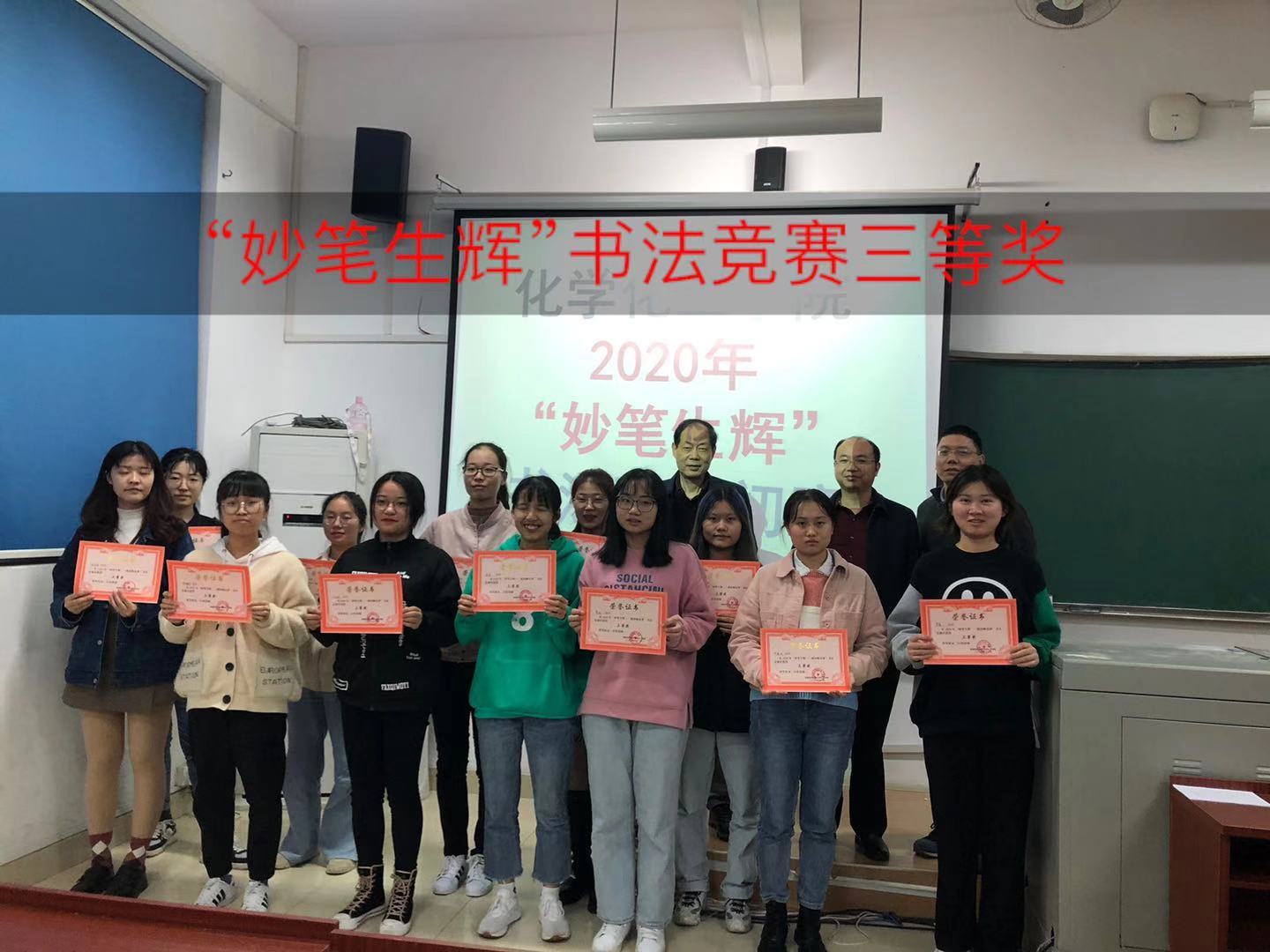 为规范学生的书写行为,稳固粉笔字、钢笔字等教学基本功,提高学生的书写水平,增强学生对中国汉字文化的了解,2020年11月20日晚,英国365集团在化学楼217教室成功举办了“妙笔生辉”书法竞赛,由化工学院“三字一话”主讲教师肖小明教授、陈应庄副教授和曾佑林教授三位老师担任评委,共有30名学生参赛。
