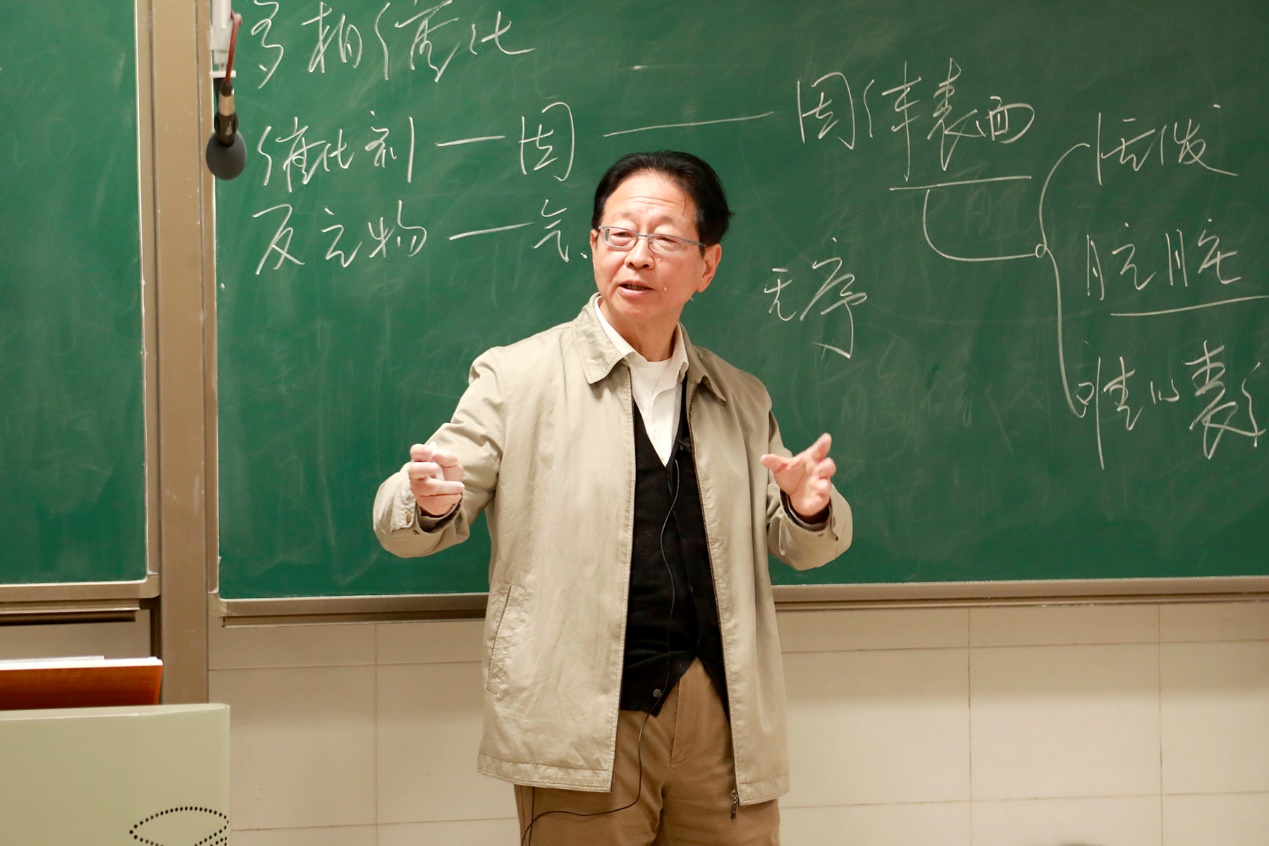 本次课郑院士讲授的内容是“配位化学与催化”,他从配位化学的基本概念入手,阐述了配位化学的实质,提出了配位化学中容易被忽视的一些问题,进而引出了催化的概念,分别从均相催化、多相催化以及均相催化剂的多相化三个方面详细讲述了催化反应的过程、机理以及催化研究中重点、难点和热点,举例描述了一些基础理论知识在前沿研究中的应用。在师生互动交流环节,郑院士与教师就新型信息化教学方法进行了探讨,鼓励青年教师积极投身教学研究,以研促教,教学相长,引导学生发挥主观能动性,激励学生探索未知、追求真理,承担起铸魂育人的重要使命。在回答学生问题过程中,郑院士寄语学生夯实学科基础知识、掌握扎实的专业技能、形成独立思考能力、培养辩证性思维与批判性思维,将个人追求融入到实现中华民族伟大复兴的建设事业中。