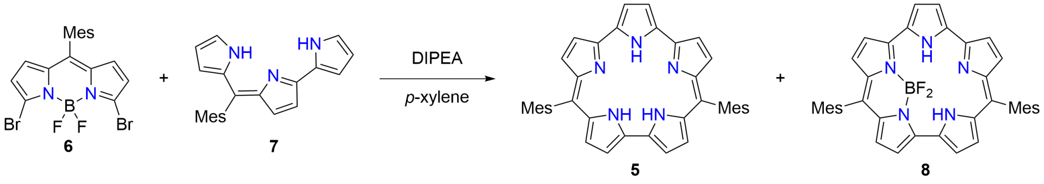 1995年Sessler教授课题组报道合成了β烷基取代的五元扩环卟啉(1.0.1.0.0),并因该化合物为橙色将其命名为orangarin。遗憾的是Sessler教授当时未对orangarin的电子结构、光物理性能及反应活性等相关性能开展深入研究,之后近二十年来只有零星数篇有关理论计算的论文指出orangarin具有20π电子反芳香性,却一直未有相关实验数据予以支持。