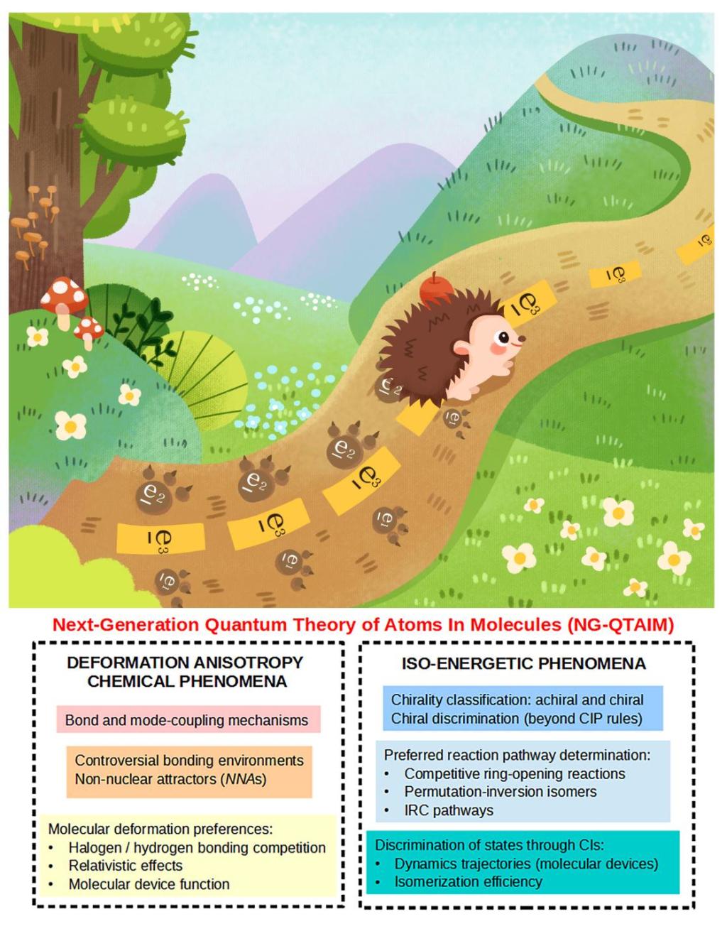 由苏曼和苏文教授领衔的理论与计算化学课题组致力于发展电子密度拓扑分析(QTAIM)理论方法。该课题组尝试用矢量量度替换掉标量量度以消除计算化学对后者的依赖。提出的新一代电子密度拓扑分析理论方法(Next Generation Quantum Theory of Atoms in Molecules,NG-QTAIM)是第一个基于矢量量度的化学理论。标量量度在整个化学过程中仅用于提取化学含义并进行预测。NG-QTAIM可以通过理解电子电荷密度积累的最优选和最不优选方向来预测结构的变化。