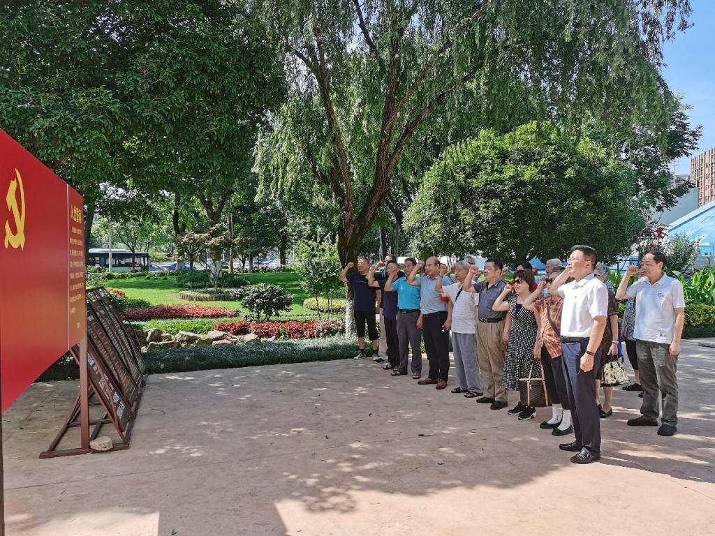 仪式后,参加主题党日活动的党员们在肖劲光故居前重温入党誓词。20余名退休老党员参与了本次活动。