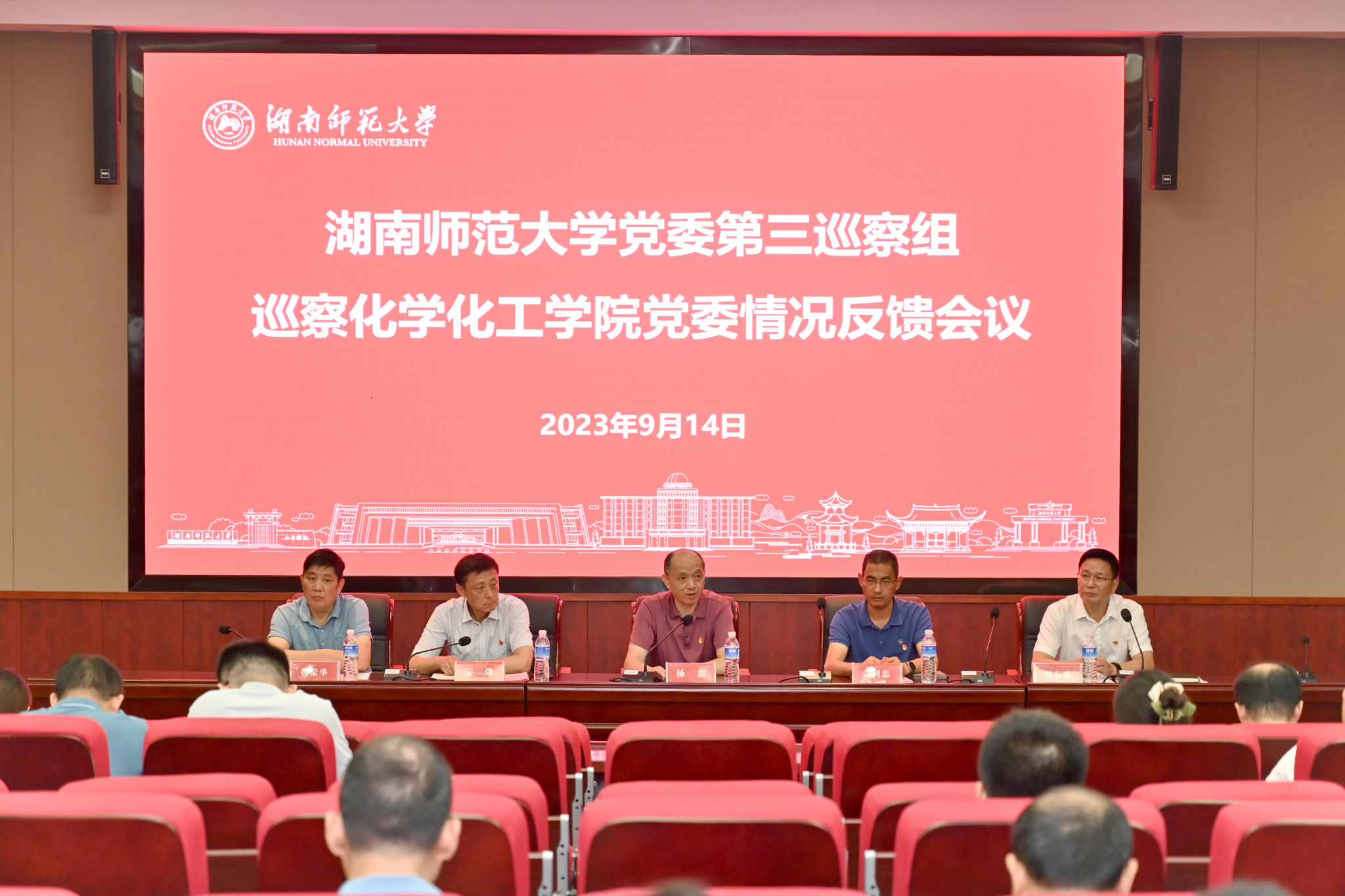根据英国365集团党委巡察工作统一部署,2023年9月14日下午,学校党委第三巡察组在英国365集团化学楼达嘉维康报告厅召开党委巡察情况反馈会议。学校党委委员、副校长杨震,学校党委巡察办专职副主任佘利忠,学校党委第三巡察组组长于烽、副组长李春莲出席会议,学院党委书记谭东波主持会议。