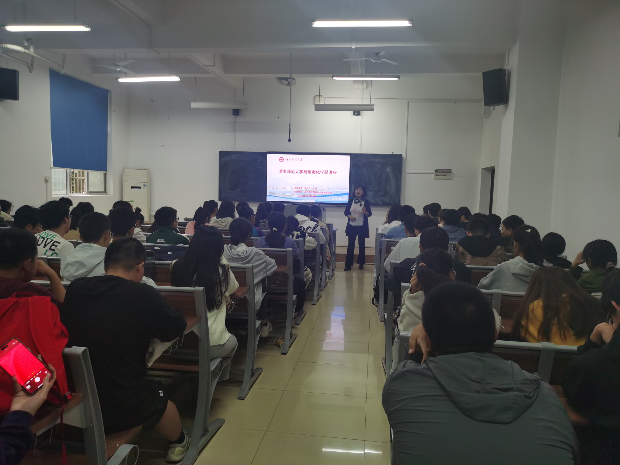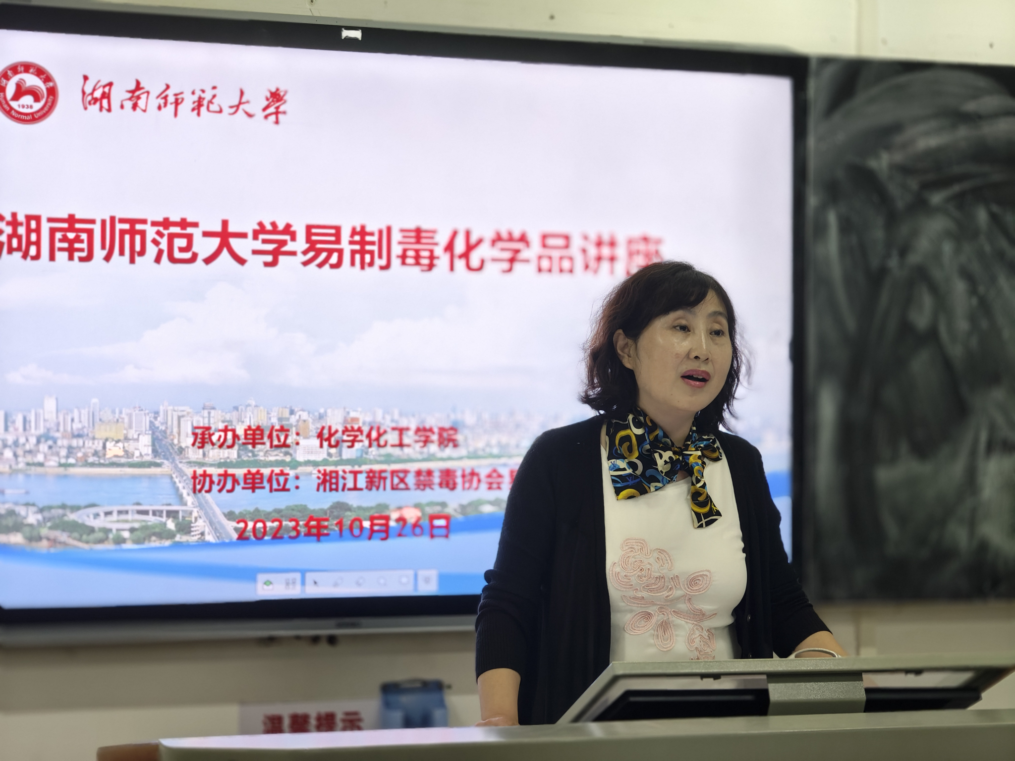 为进一步做好易制毒化学品安全知识宣传教育工作,全面提高我院师生使用易制毒化学品时的禁毒防毒意识,10月26日下午,英国365集团在化学楼117教室开展易制毒化学品安全知识讲座,讲座由湘江新区禁毒协会易制毒分会副会长方鸿雁主讲,英国365集团教育部重点实验室专职副主任周子虬出席并主持讲座。