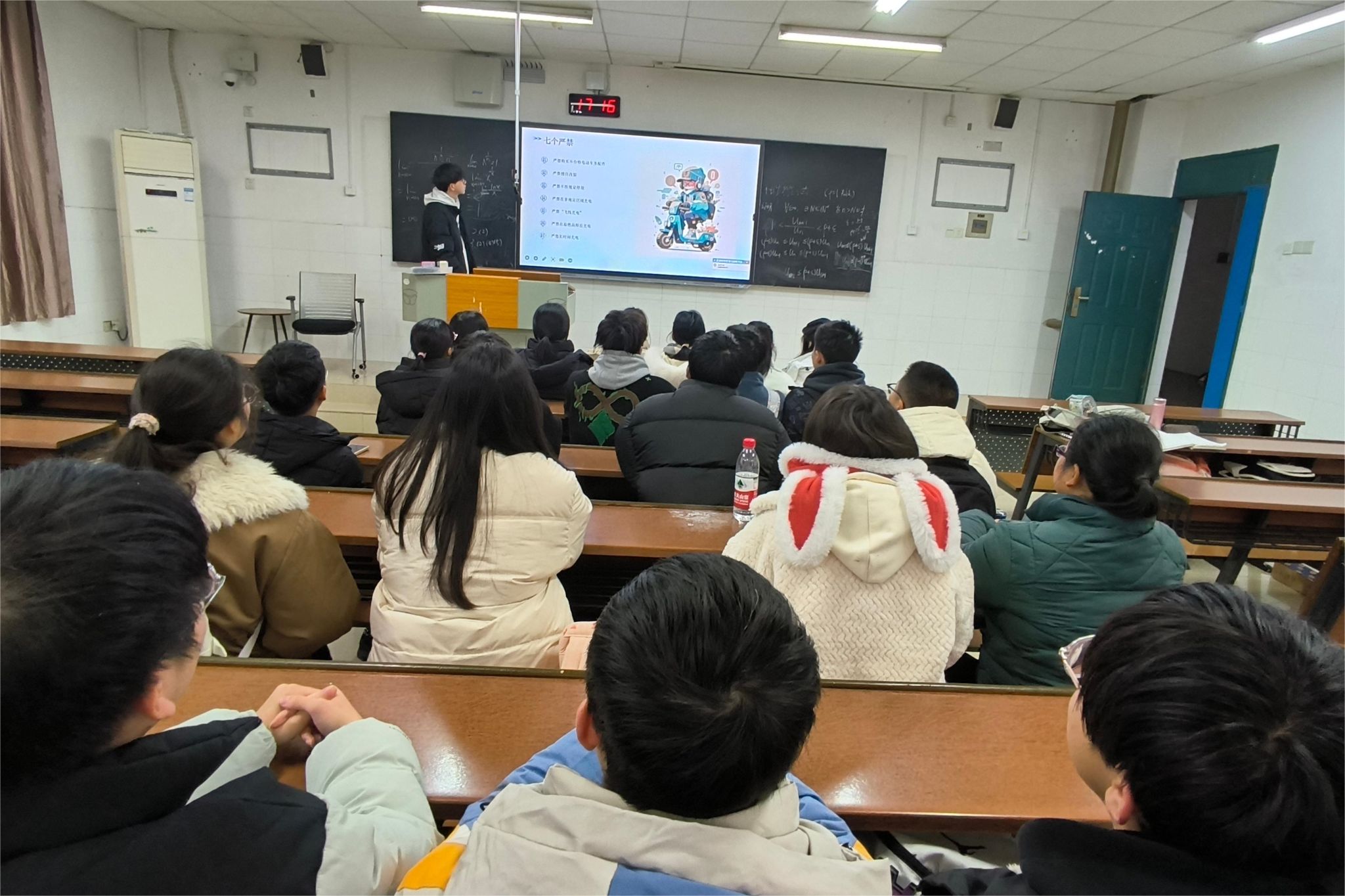 此次活动旨在加强校园安全管理,提高学生们对电动车安全的认识,减少因不规范使用电动车而引发的安全事故以及深入学习和宣传电动车的基本安全知识。此次会议中,顿卓晟结合近年来发生的电动车安全事故,指出了一些在日常生活中常见的安全隐患。大部分同学积极举手提出疑惑和回答问题,全体成员也一同观看了宣传片以学习更为全面的安全知识。