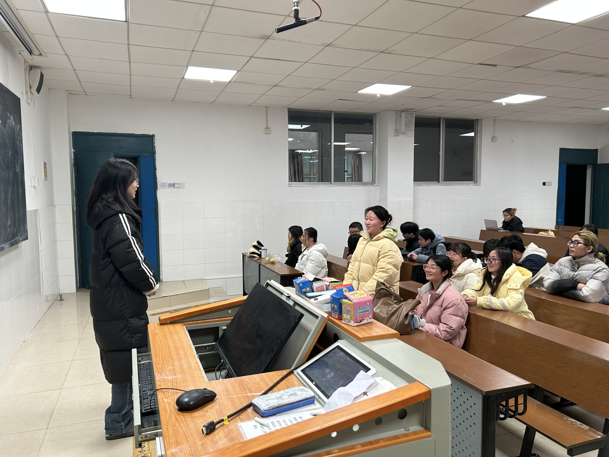 马心蕊为同学们简要介绍了电动自行车安全管理“七个严禁”,提醒同学们切勿以身试法,需时刻注意安全。为加深同学们对安全知识的印象,马心蕊播放违规行驶的相关视频,警示同学们应将相关规定铭记于心,同时强调骑行装备与着装的重要性,提醒大家佩戴符合标准的安全头盔。最后,胡筱晨同学向同学们介绍骑行规则与习惯,再次说明骑行需遵守交通规则并谨慎驾驶。