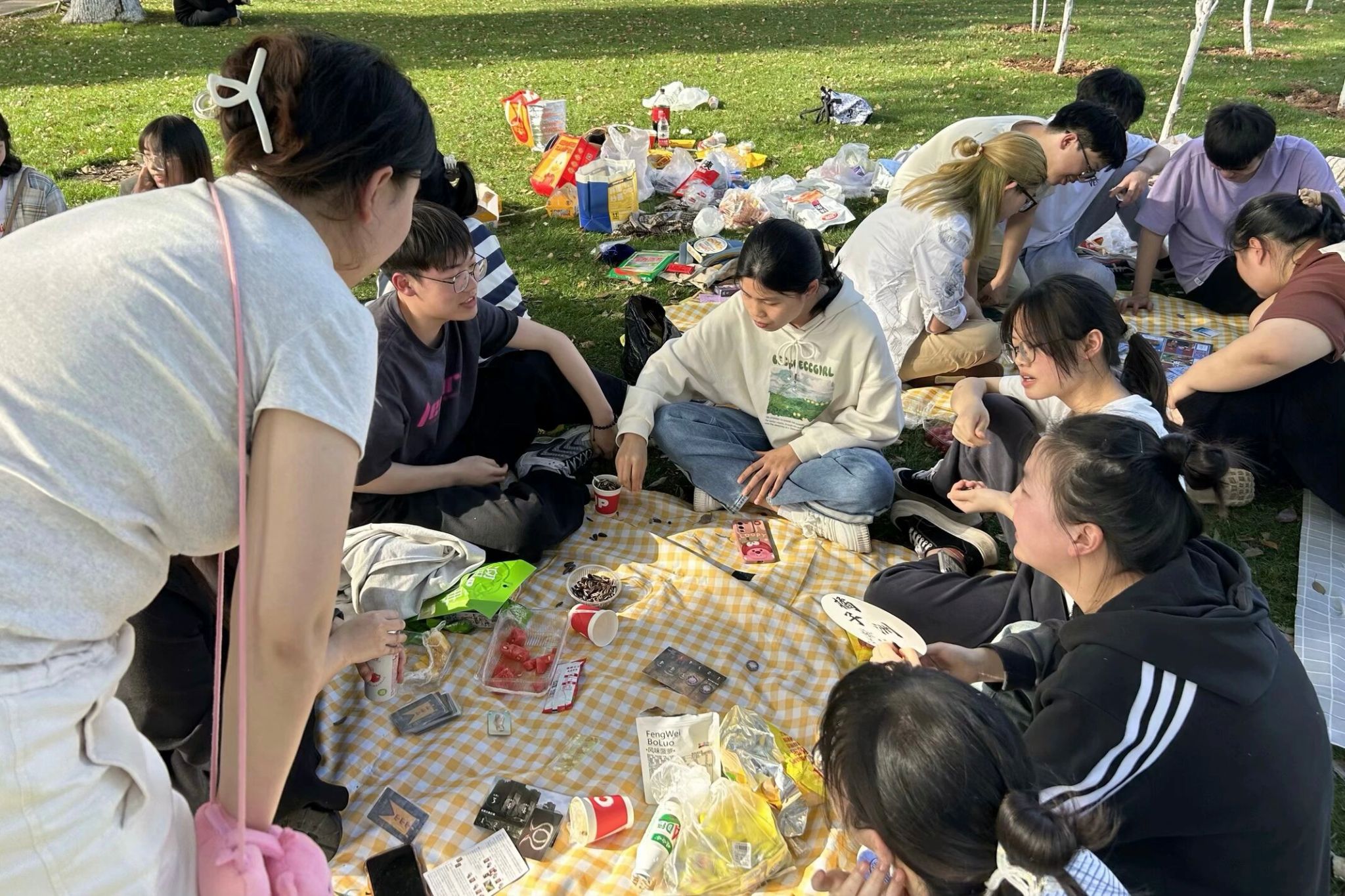 活动当天,天气晴朗,春意盎然。活动开始,同学们在湖边草地上铺开野餐布,共享提前准备的美食、水果和饮料。同学们自发组织了桌游、知识问答等趣味活动。野餐过后,学生们一起进行合照,并且亲手清理了野餐后的垃圾,体现了保护环境、爱护自然的自觉性,以实际行动践行了环保理念。
