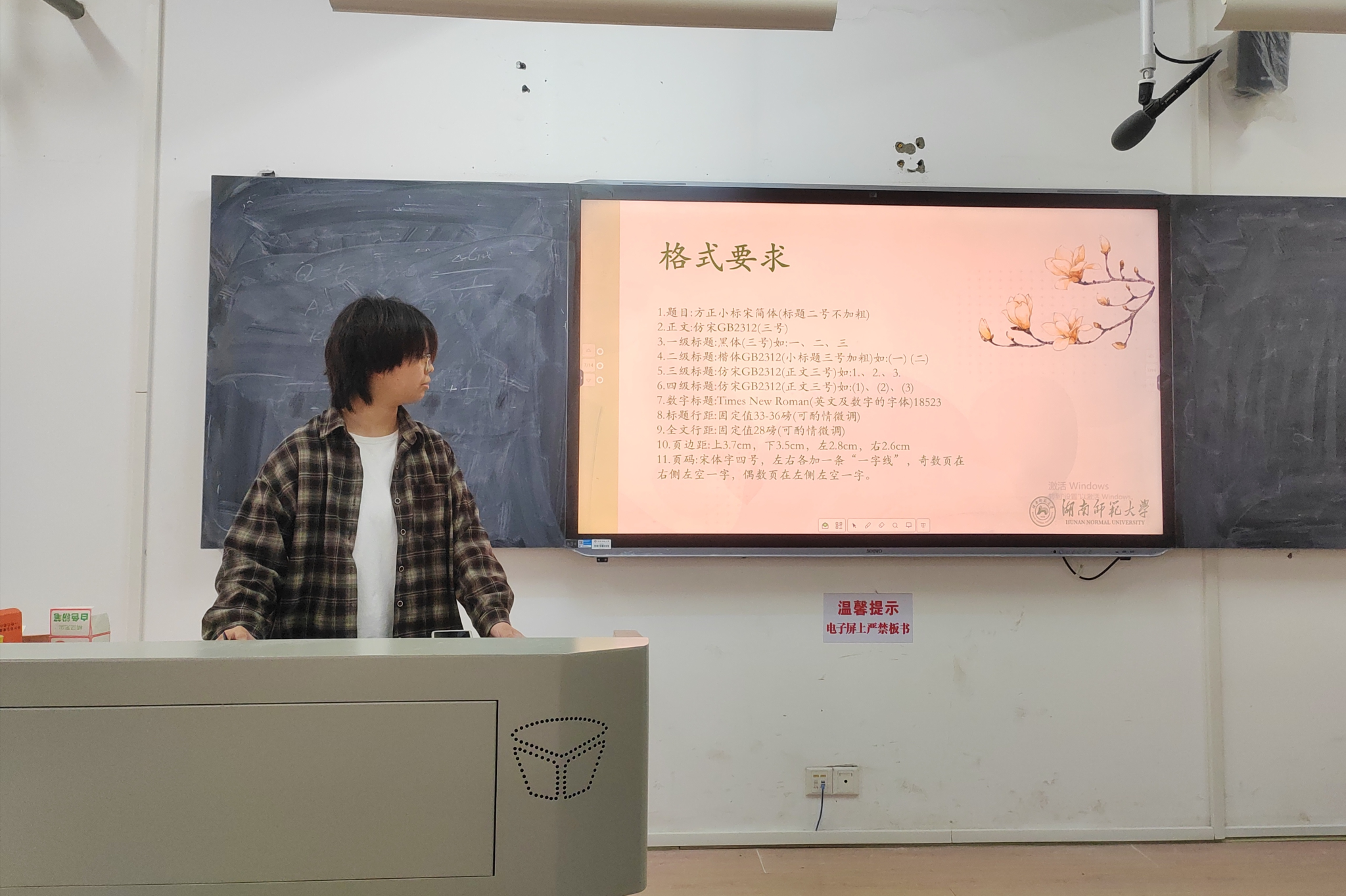 在各部门开展工作汇报之前,学发部干事黄娅妮上台讲解有关策划案撰写和穿搭主持技巧的培训内容。在此次培训中,黄娅妮从时间、地点等多个方面详细介绍了策划案撰写的细节和注意事项,同时也阐述了在主持时应注意的事项以及衣饰穿搭的重要性。