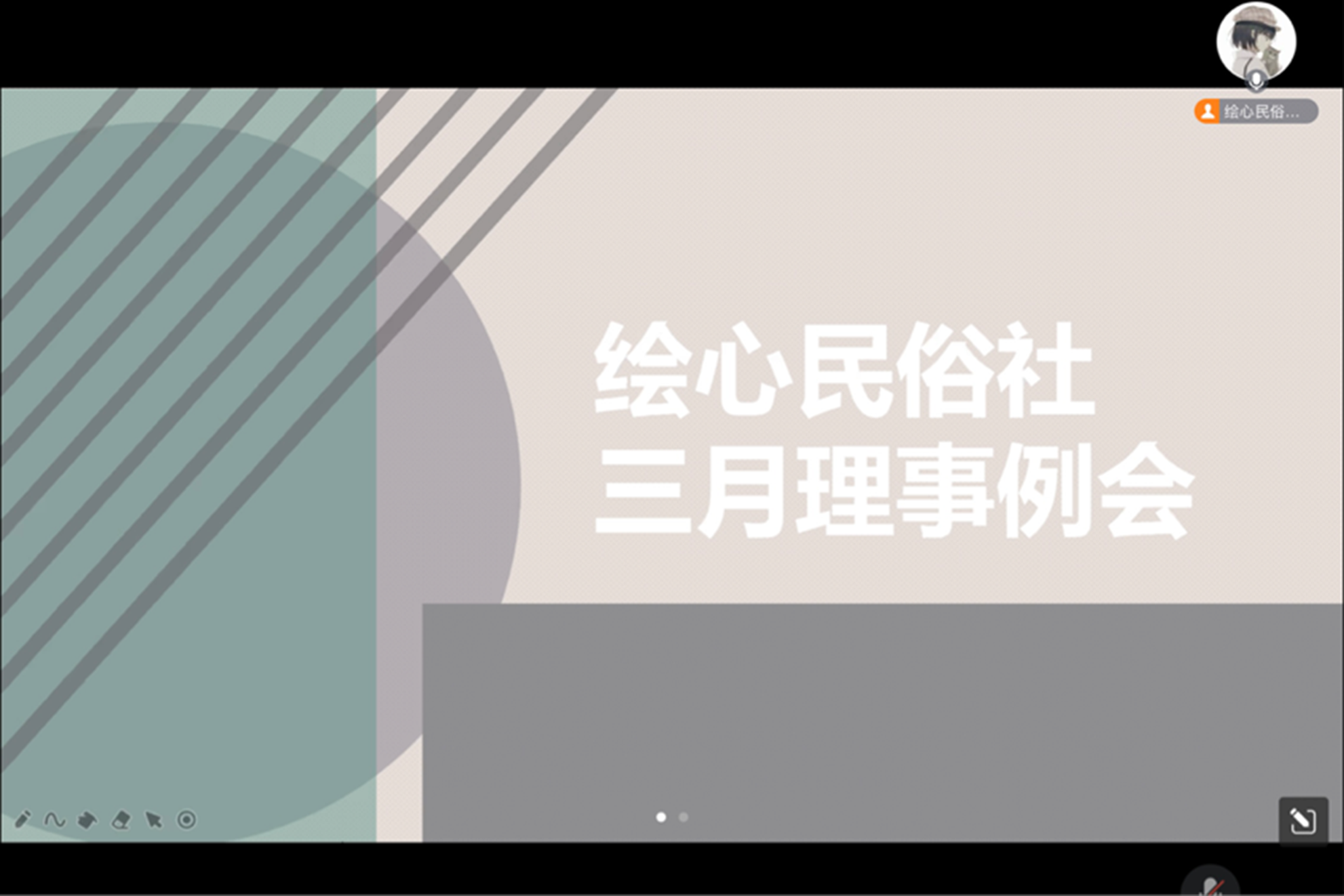 (通讯员 曹雪倩)4月14日22时,英国365集团绘心民俗社于线上开展了3月理事会议,此次会议由绘心民俗社理事长邱渝杰主持,全体理事会成员参与。此次会议主要对3月社团活动过程中出现的问题进行总结。