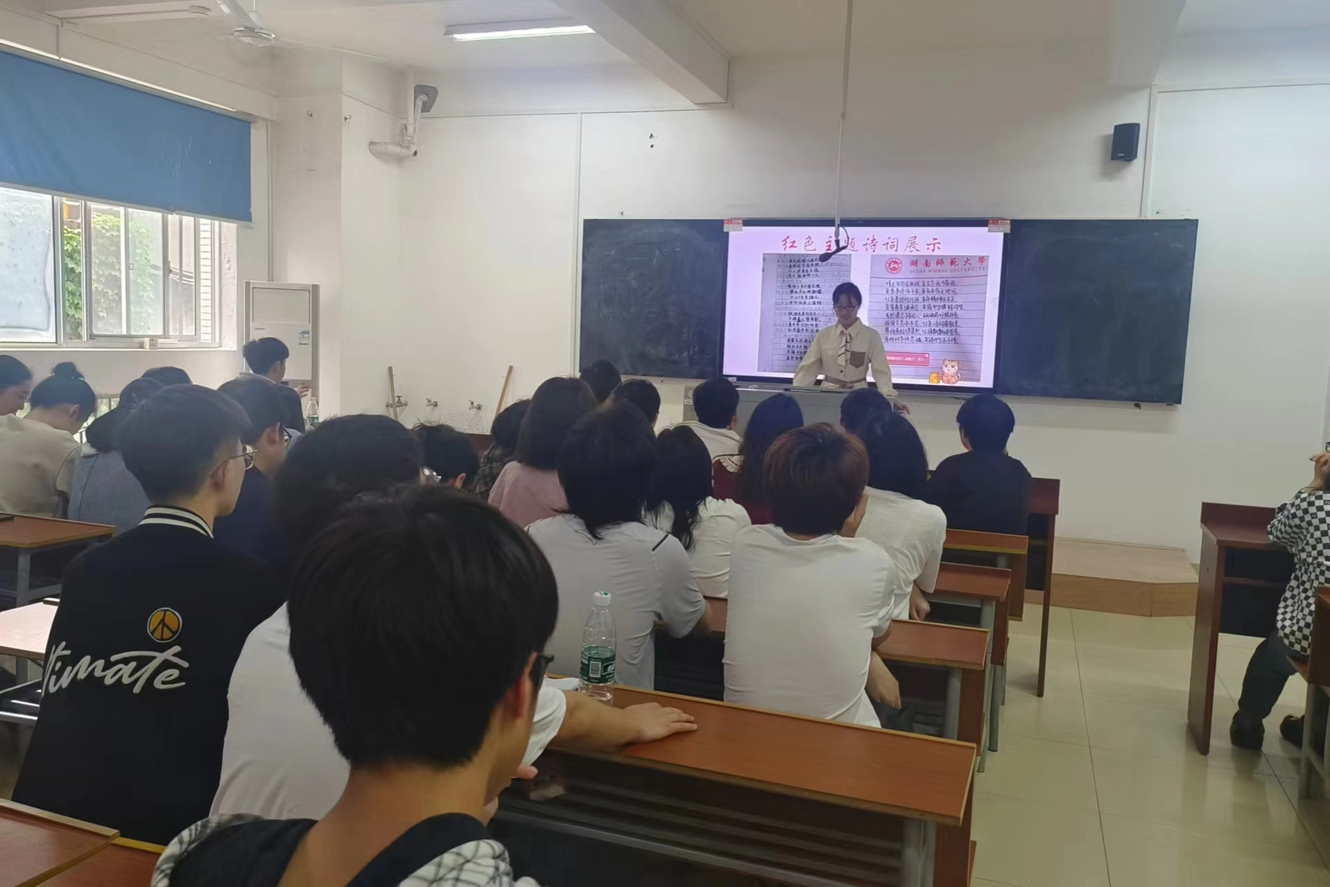 活动以清明节为契机。两个班联合举办红色书信和红色主题诗词征集活动。红色书信和红色主题诗词蕴含着丰富的爱国主义情感和民族自豪感,这些作品的展示引导团员们深入感受先烈们的爱国情怀。此外,贺婷通过幻灯片内容对活动进行总结升华,主要从清明祭英烈,传承红色基因,共筑中华魂三个方面展开论述,鼓励同学们怀揣着先烈们的红色信仰,在前进中不迷惘、在困难前不退缩、在奋斗中不懈怠。