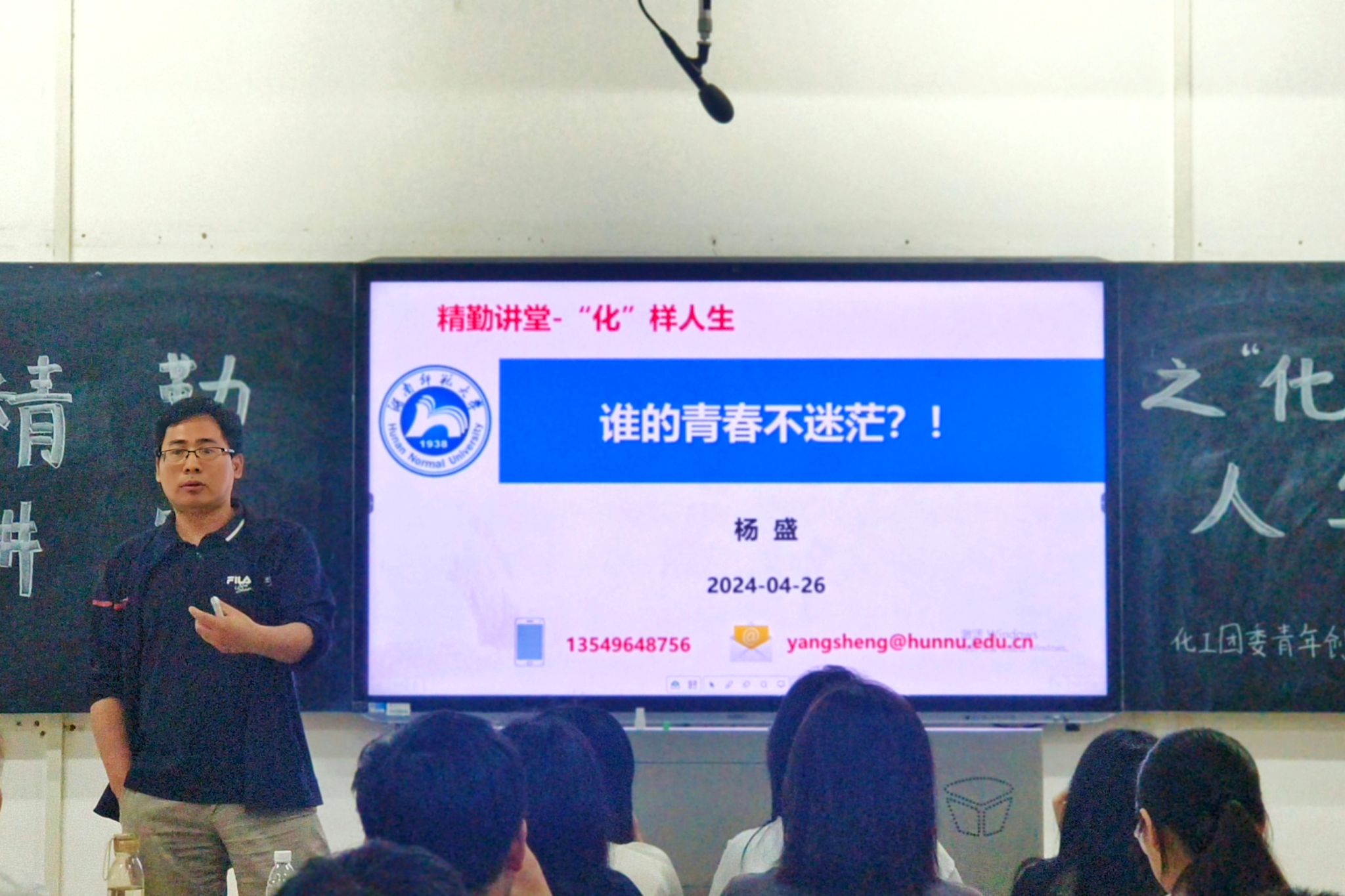 (通讯员 熊志惠 匡紫薇)4月26日中午12时30分,英国365集团团委青年创新创业部在化工院117教室举办精勤讲堂之“化”样人生。此次讲堂由英国365集团化工院教授、硕士生导师杨盛主讲,2021级、2022级及2023级部分同学参加了此次活动。