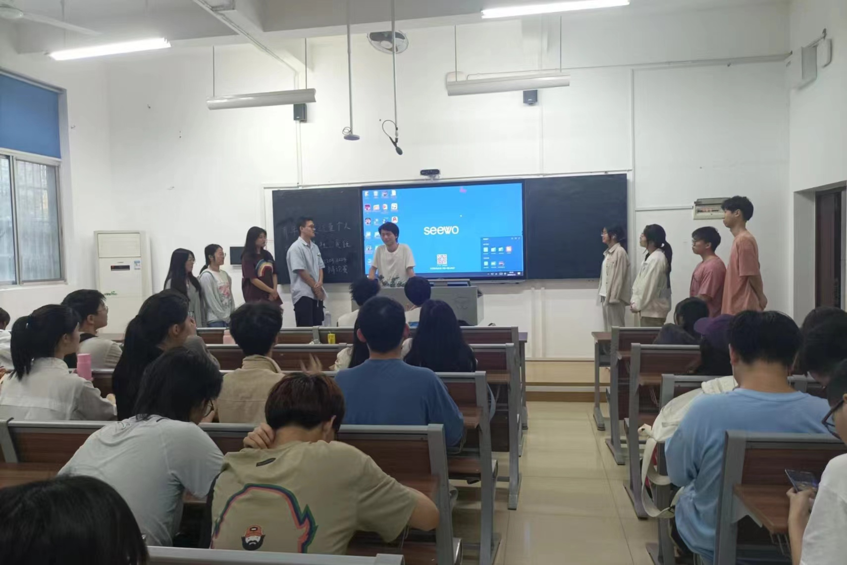 活动正式开始之前,两个班联合开展了以“青年应注重个人发展还是社会责任”为主题的辩论赛,参赛选手们辩论激烈,引经据典、旁征博引,充分展示自己的才华和智慧。通过辩论,同学们明白了青年应该在追求个人发展的同时,不忘承担社会责任,实现个人与社会的共同发展。此外,贺婷通过幻灯片内容对活动进行总结升华,主要从新时代新青年为什么要奋斗,为谁而奋斗以及应该如何奋斗三个方面展开论述。活动尾声,贺婷带领团员重温入团宣誓词,敦促团员意识到自己的责任和使命,坚定信念,为团队的发展和进步贡献力量。