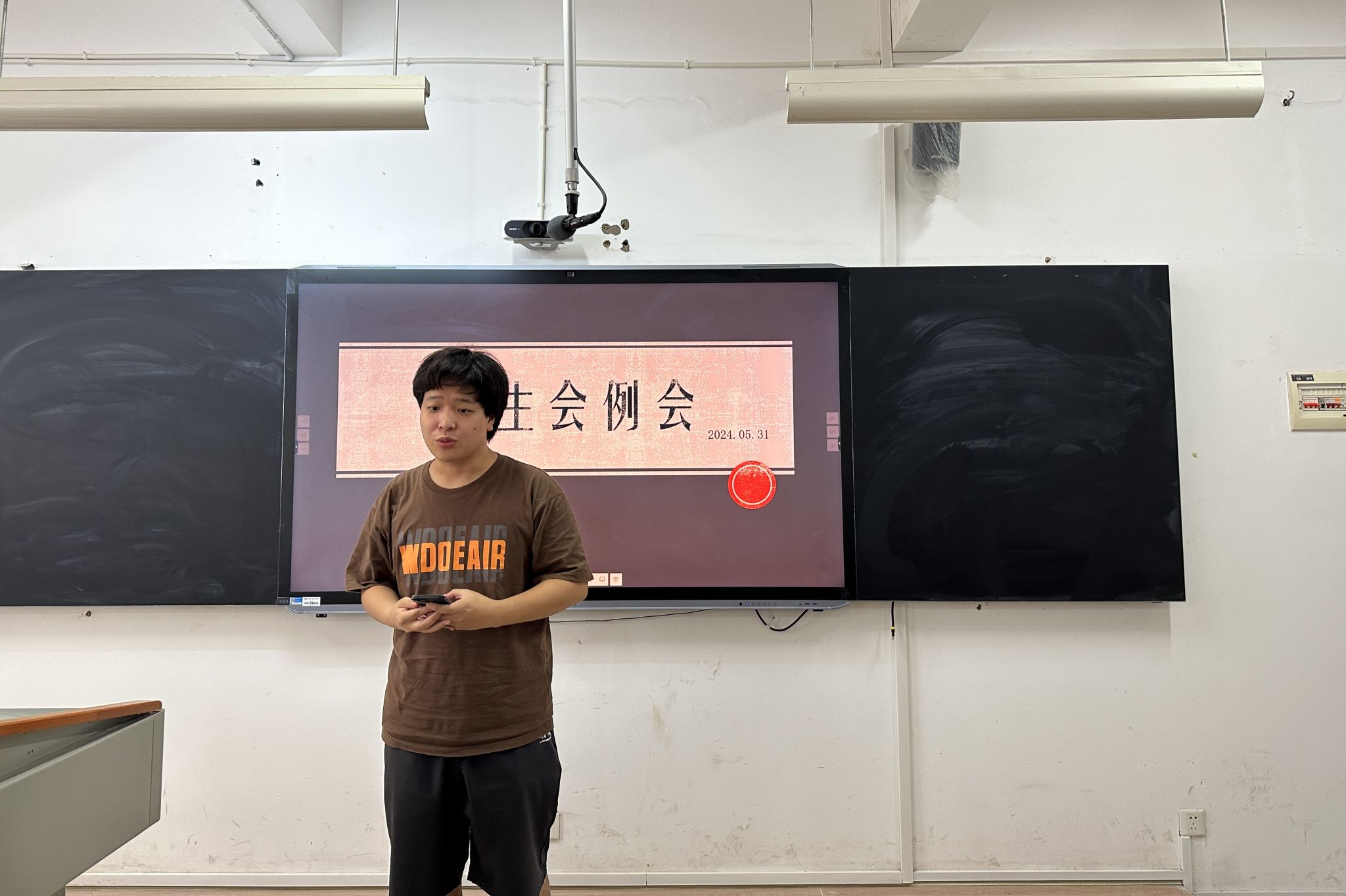 活动伊始,各部门成员依次上台汇报近期工作情况与下一步工作计划。宣传部正在进行双代会微推的制作和候选人资料的收集;办公室正在撰写学生会换届面试通讯稿和月通讯稿;学发部预备发布“21天学习搭子”活动的公示证明;文体部组织开展排球队训练,并将于5月31日至6月2日举办为期三天的16进8排球赛;权益部正在进行国家开发银行生源地助学贷款毕业学生的确认和“我给你们写封信”毕业生活动的总结材料的整理;健服部已完成朋辈十佳百优申报材料的收集和读书观影作品获奖评选及公示,正在制作“5.25心理节”的活动微推。最后,主席团号召对校学生会感兴趣的成员可以积极关注暑期换届通知,参与暑期的笔试环节。