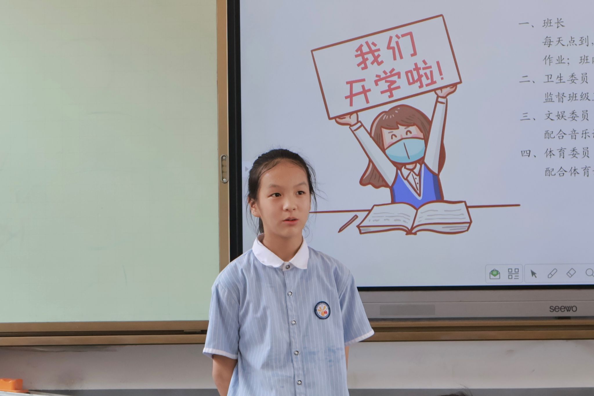 此次班会活动主要包括三个内容:班级同学自我介绍、学生上台竞选班干部、班主任讲解注意事项。在聂颉矞和刘雅凯的引导下,每位学生依次作简短的自我介绍,给班级其他同学留下了初步印象。聂颉矞组织学生进行班干部竞选,此次选举遵循公平、民主及择优原则,竞选者轮流上台演说,最终由同学们投票选出四年级班级的班长、卫生委员、文娱委员。刘雅凯提醒学生注意校园内外的各类事项,以保证教学活动正常进行。