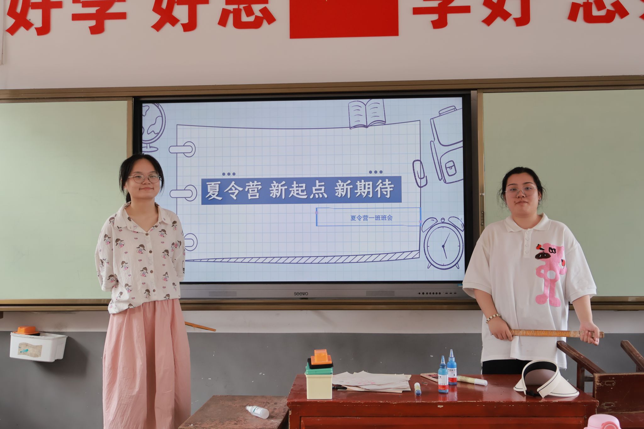 班主任聂颉矞和副班主任刘雅凯在主持会议