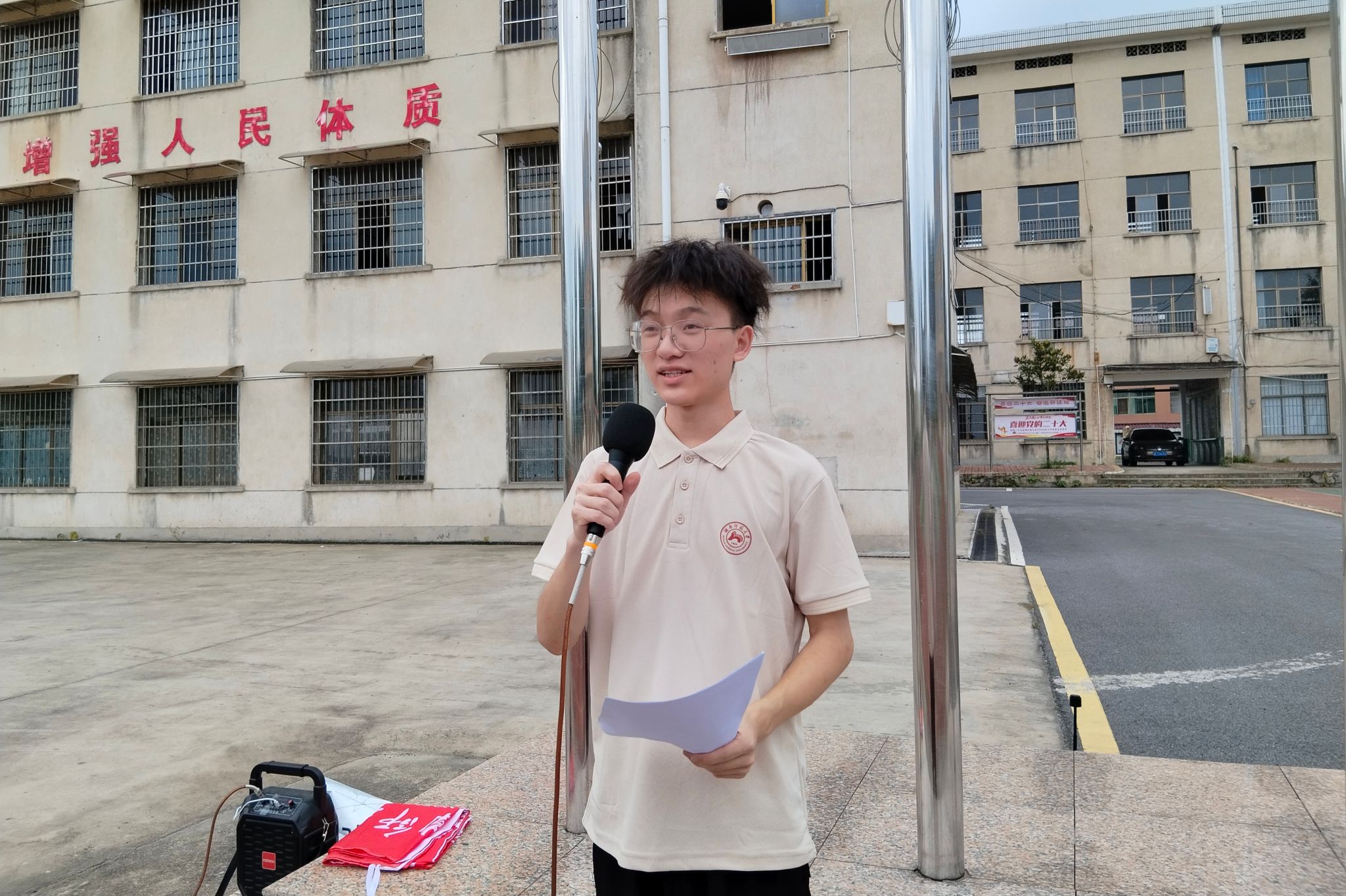 副队长范俊在开学典礼上致辞