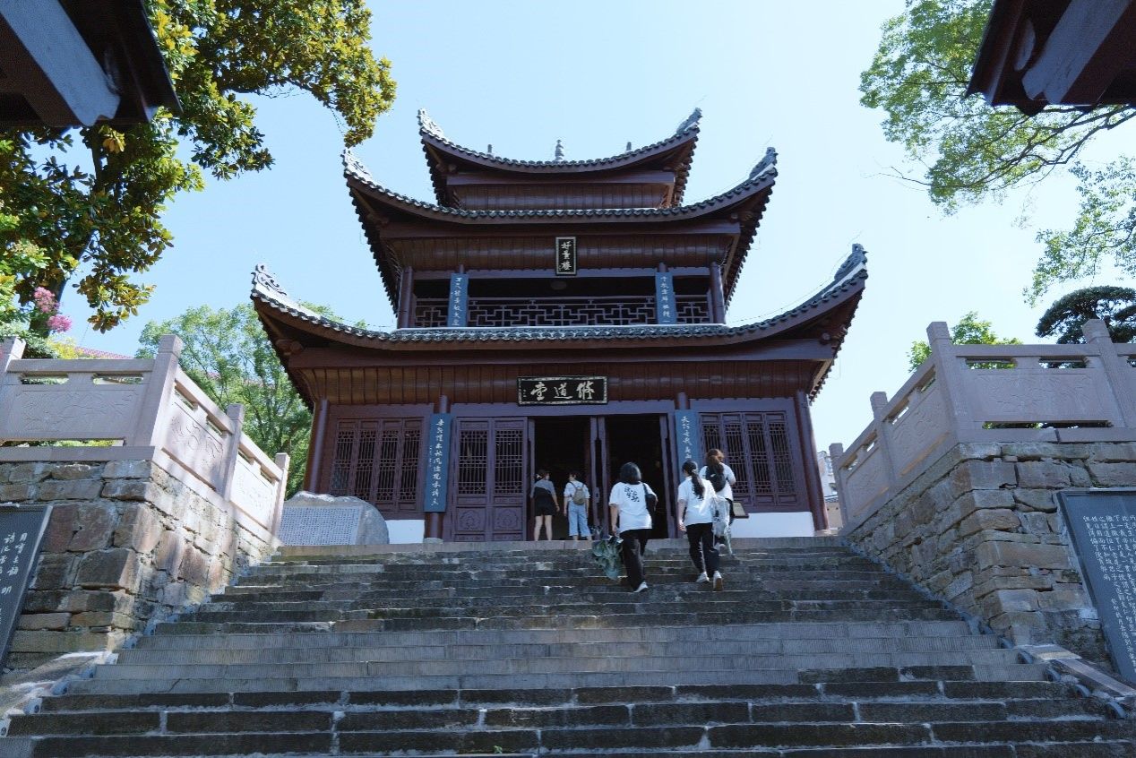 在参观龙兴讲寺的过程中,调研组了解到了虎溪书院的发展历史及王阳明先生的生平事迹,同时调研组还发现龙兴讲寺一直在致力于非遗文化普及工作的推进。寺内工作人员在展厅内精心安排非遗展品顺序,排列位置。调研组成员参加了其组织的一系列的社区讲座和文化交流活动。