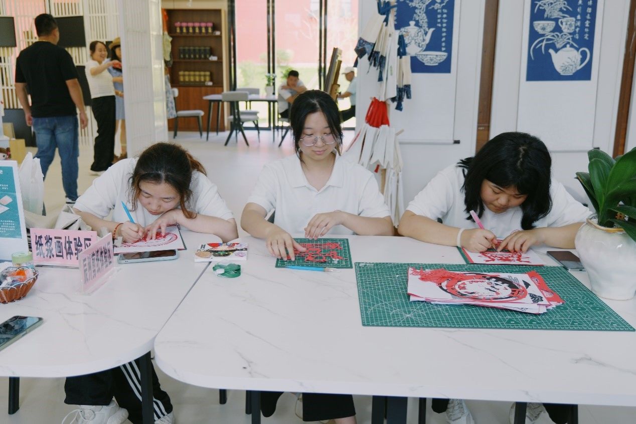 在你好·沅陵 非遗·文创·好物馆中,调研组观看了许多非遗文化的文创产品,如辰州剪纸、沅陵刺绣、纸浆画、碣滩茶等。其中,调研组成员对辰州剪纸产生了浓厚的兴趣,在体验剪纸的过程中,调研组成员发现,剪纸尽管表面上看似简单易懂,但实际上,此项工艺对刻刀方向的掌控和力度的运用都非常考验技巧。