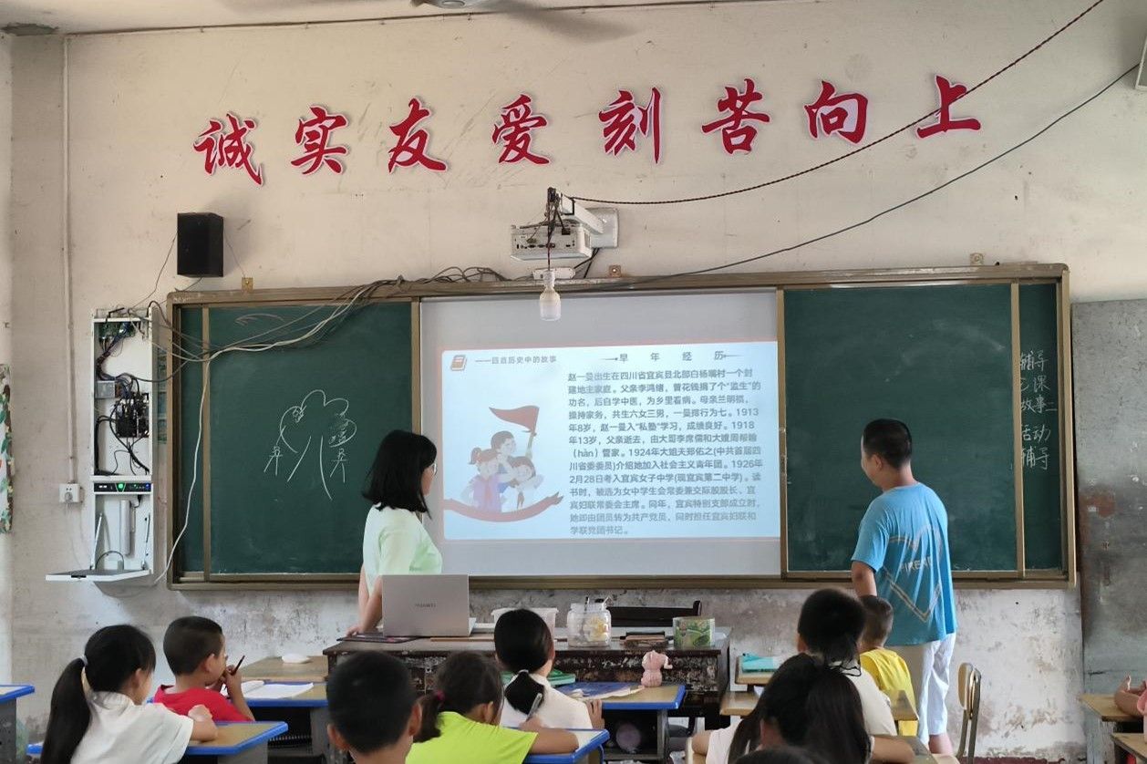 团队成员向学生介绍赵一曼