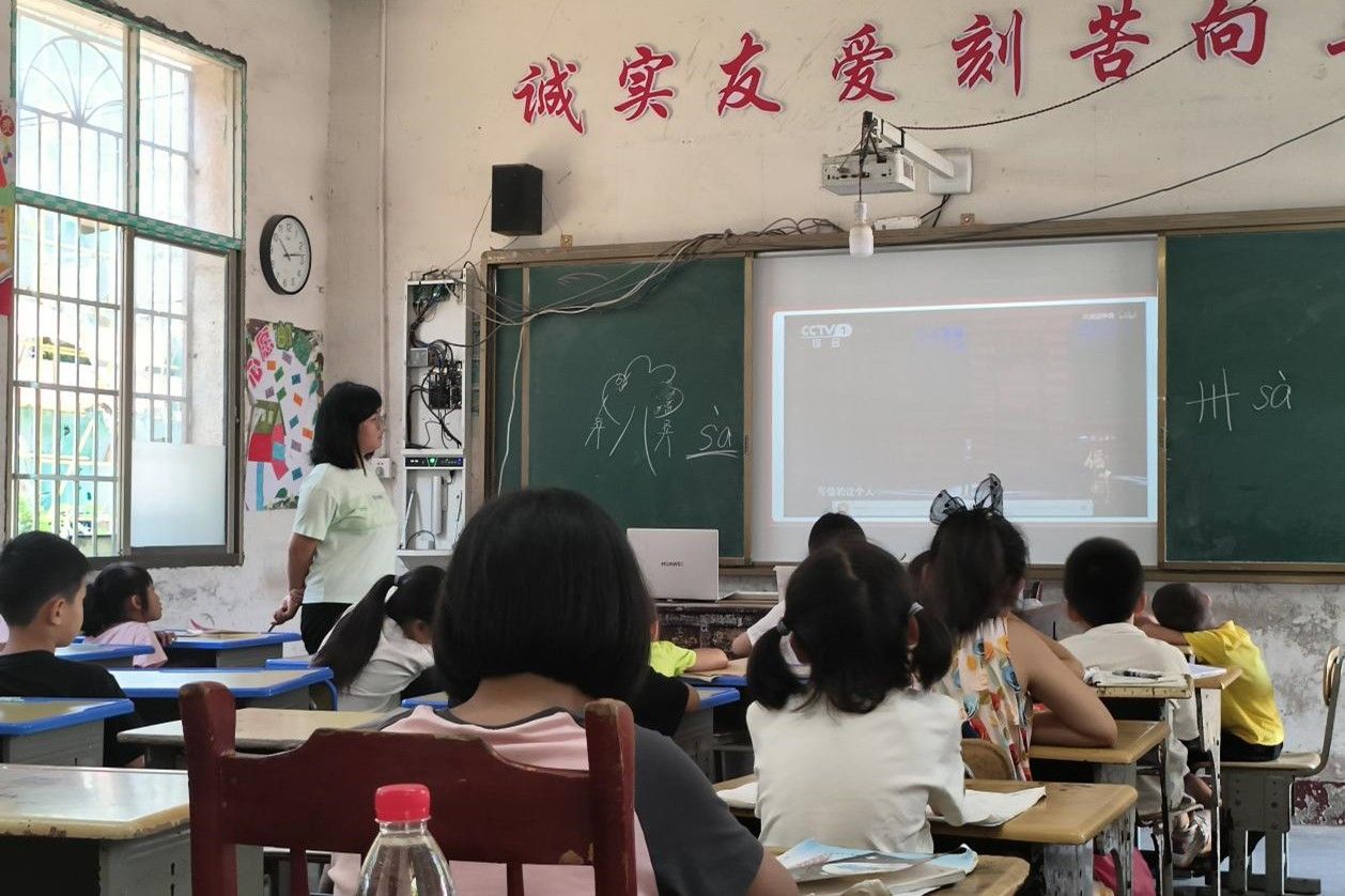 团队成员为学生播放视频