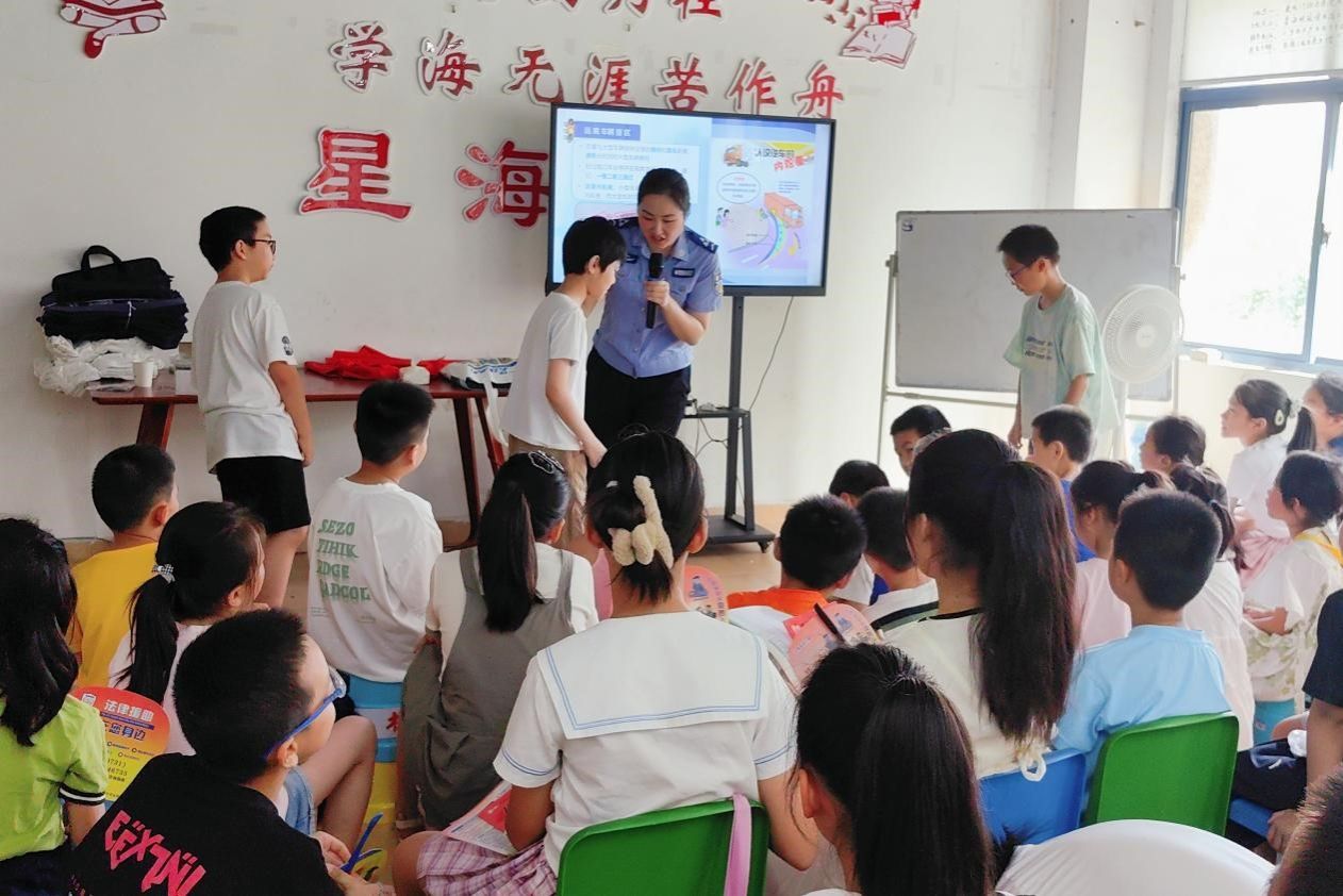 活动现场,普法宣传人员以授课形式向社区青少年讲解交通安全和性侵害等知识,还通过互动问答、现场咨询等形式向社区青少年普及相关法律知识,教授未成年人如何依靠法律维护自身权益。活动中,实践队教学组成员协助司法局工作人员发放《青少年法制教育宣传手册》《交通安全知识宣传教育》《加强防范意识,远离性侵害》等法律读本,引导学生认真阅读并进一步解答学生疑惑,提高学生的法律意识,为学生的健康成长筑起法律的屏障,助力社区建立健全法制化、规范化的管理和教育体系。