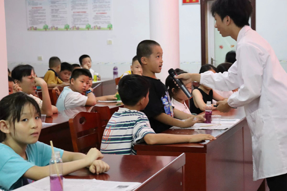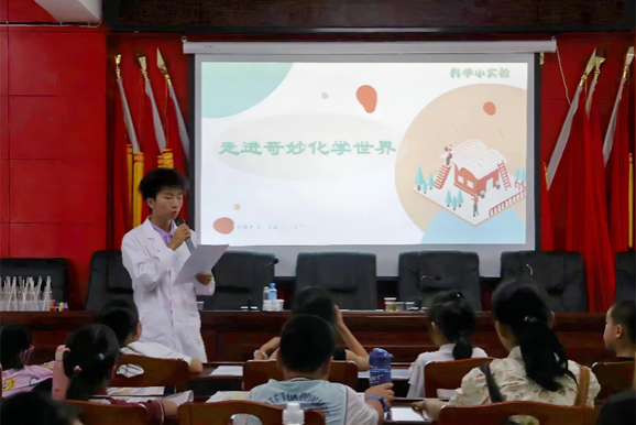 (通讯员 周倩妮 曾胡杨)为激发乡村孩童对化学的浓厚兴趣,培养其基础化学实验素养,7月14日下午,英国365集团“麓山青年”社会实践团在墙背村报告厅组织当地中小学生进行趣味化学实验课程学习。此次课程由“麓山青年”副队长李岚彪主讲,另有几名助教协助活动开展。