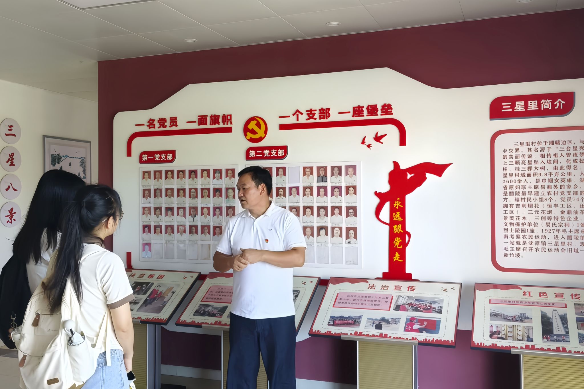 三星里村党支部书记易根向实践团介绍三星里村红色事迹