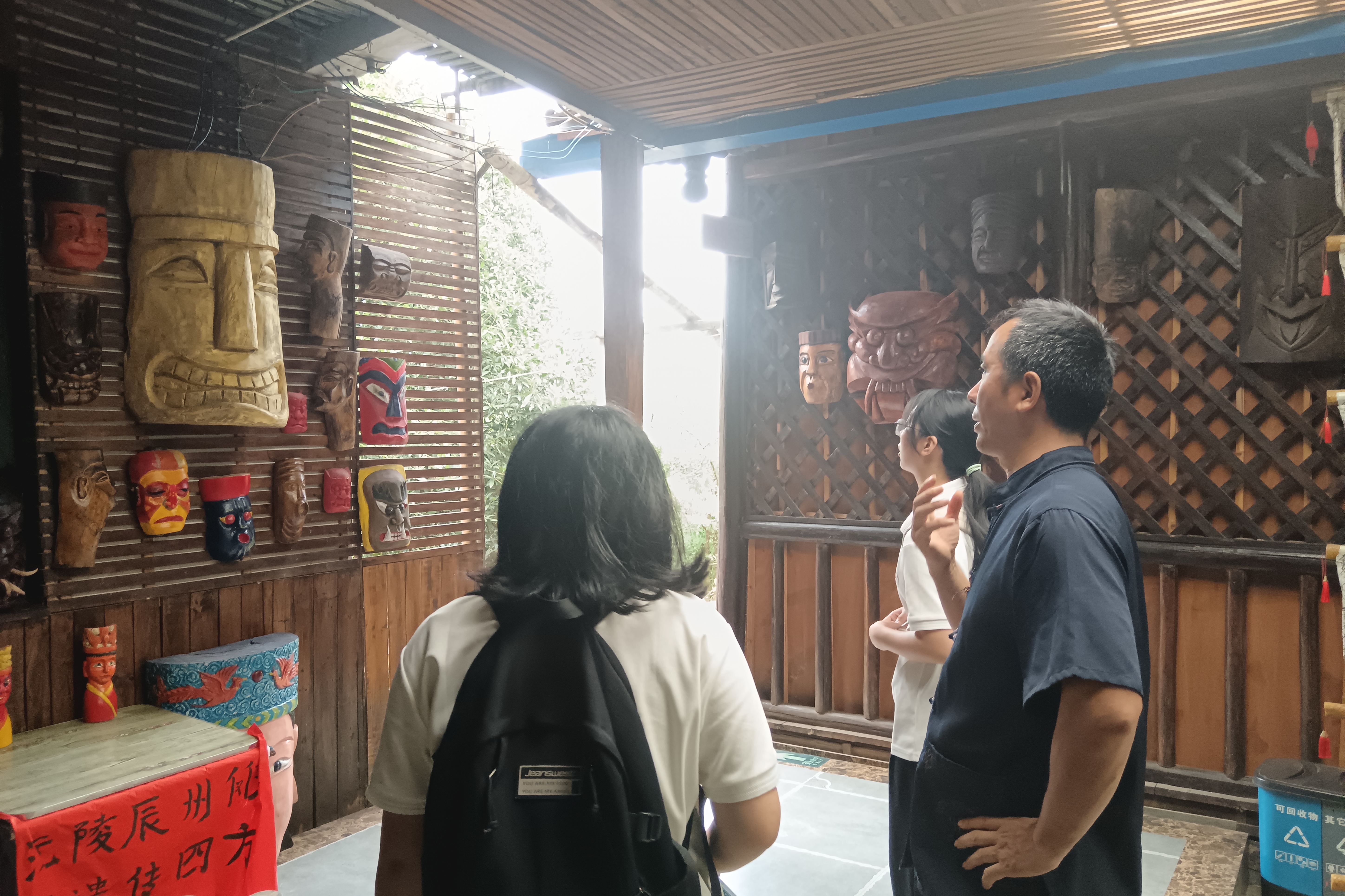 向清国给调研组成员们介绍傩面具