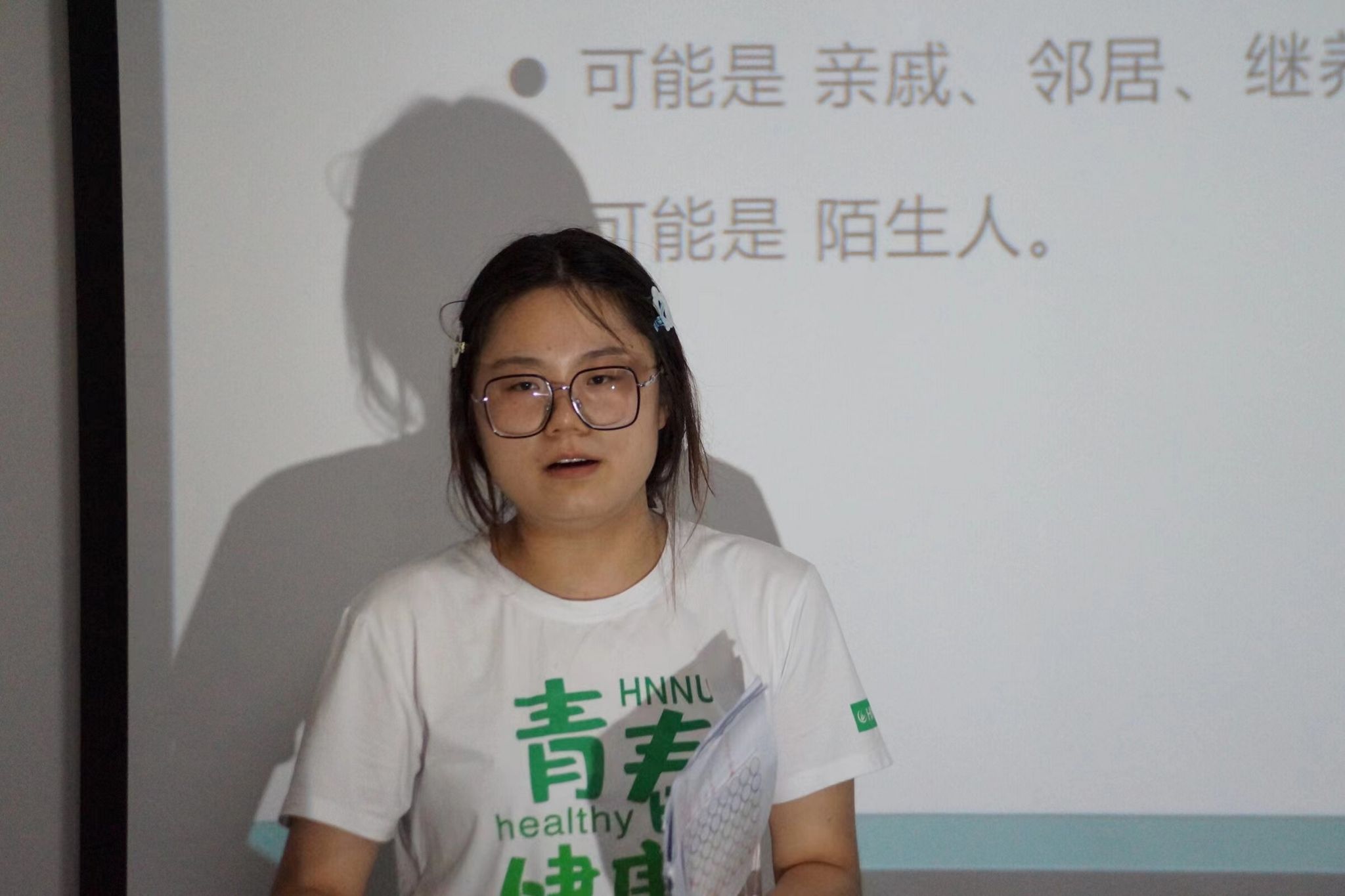 主讲人向学生介绍性侵害知识