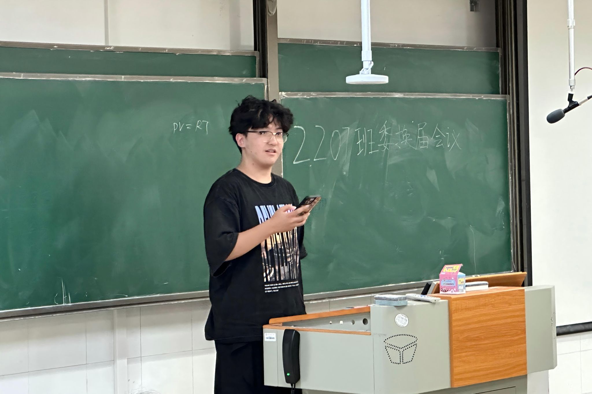 此次班会由房怡汐主持。会议伊始,房怡汐对各职务的主要工作进行简短的介绍,并按照顺序邀请参选同学上台发言。参选同学从竞选优势、对职务的理解、对未来工作的规划几个方面展开发言。发言结束后,房怡汐总结此次班会,并组织班级同学投票。经选举,2207班班委最终确定为房怡汐、戴志宇、郑烨昊等七人。