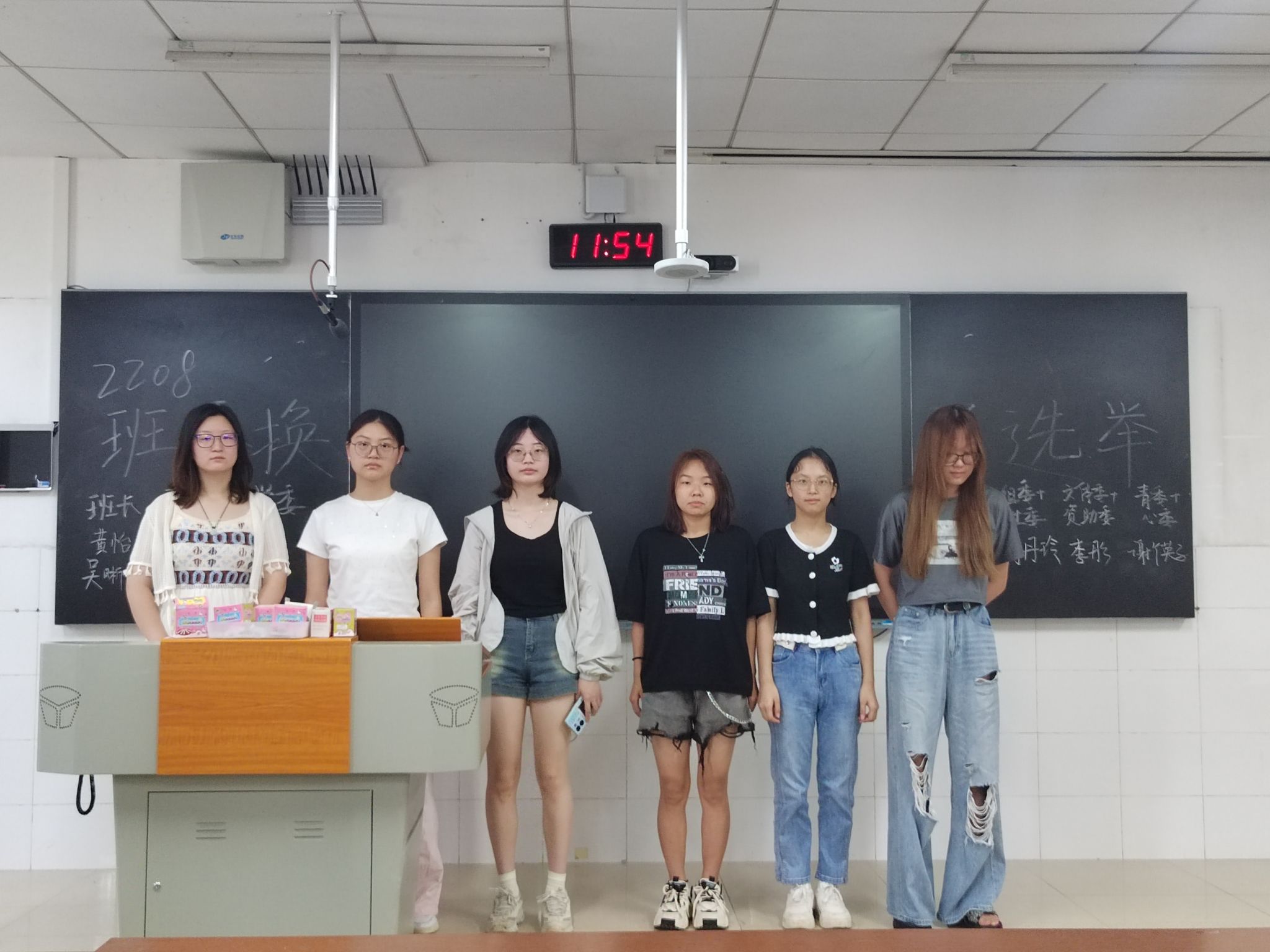 活动伊始,吴晰睿总结了前届班委们的表现并表示感谢。选举开始后,有意向竞选各个班委职位的同学依次上台发言,向其余成员们进行自我介绍,阐述了自己对于班级管理的观点以及对于工作的计划。经过同学们的自主投票后,2208班迎来了新一届班级委员会。选举结束后2208班班委会全体成员一起进行了合影留念。