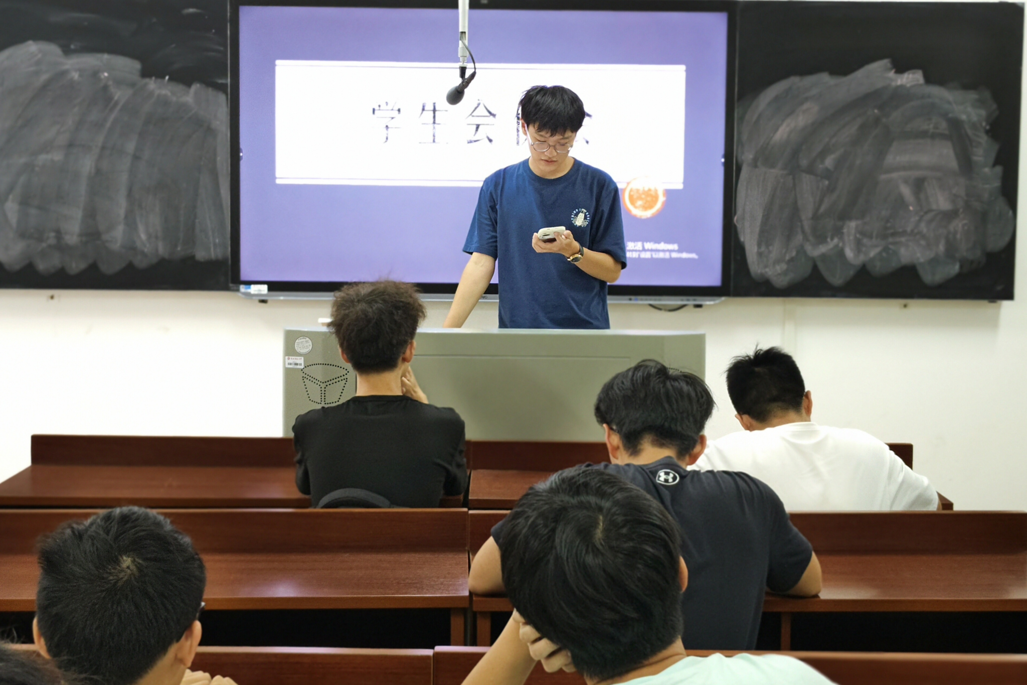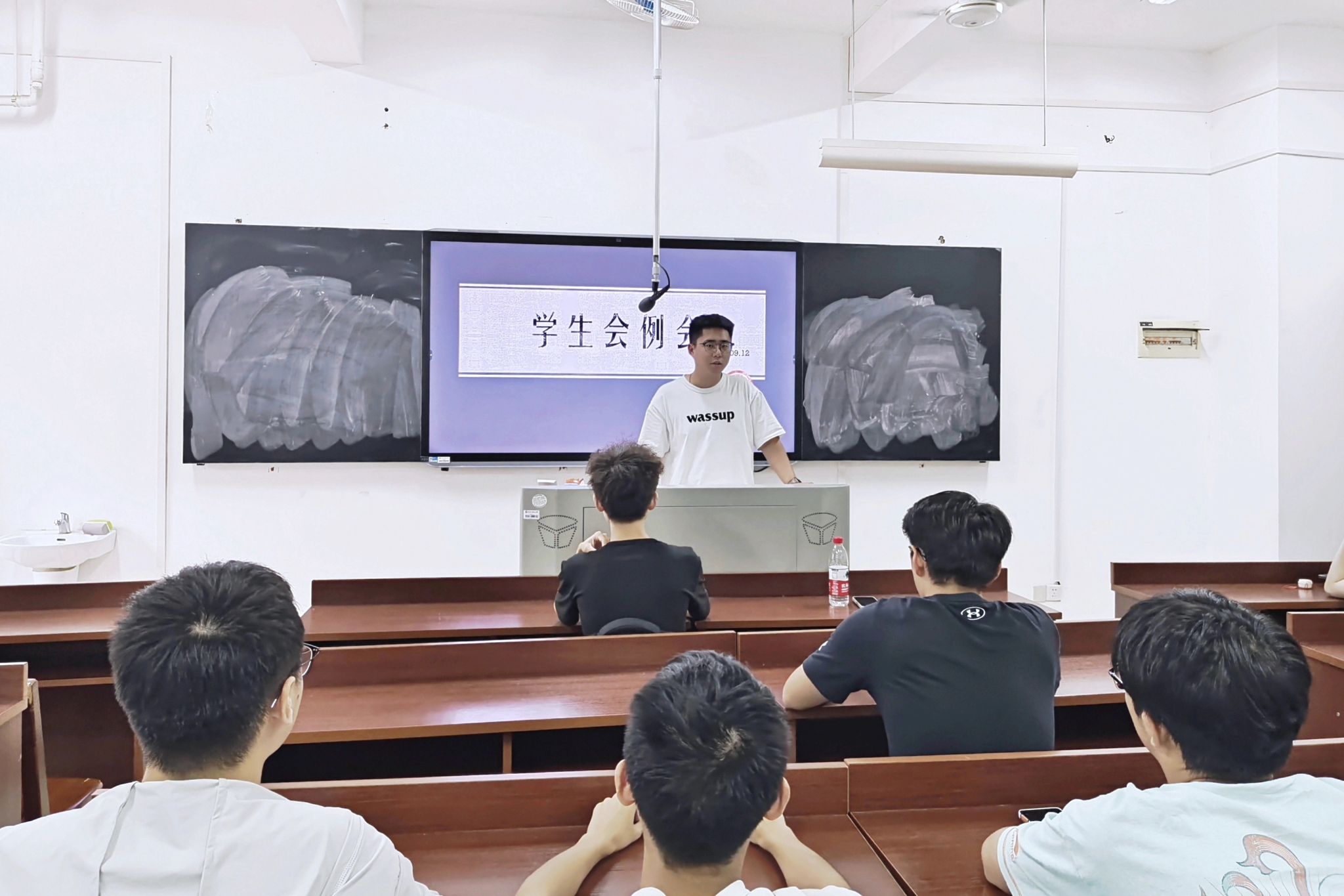 各部门依次上台汇报近期工作与下一步工作计划。宣传部已完成学生会招新微推的发布,正在逐步发布各部门招新说说;办公室已完成招新宣讲PPT的制作和快乐周末谈的准备工作;学发部完成了“新老生交流会”23级优秀代表的邀请,正在进行“书香校园”和“新老生交流会”的相关工作;文体部已发送活动公示汇总,正在进行迎新晚会策划案的撰写;健服部已完成“健心践行”暑期社会实践调研活动材料的提交及礼仪队志愿时长的统计与后续公示文件的制作、发布;权益部完成了新、老生回执码的收集,解决了部分同学的注册问题。最后,主席团成员总结了近期工作,督促各部门负责人尽快与换届后的班干部取得联系并加入群聊。