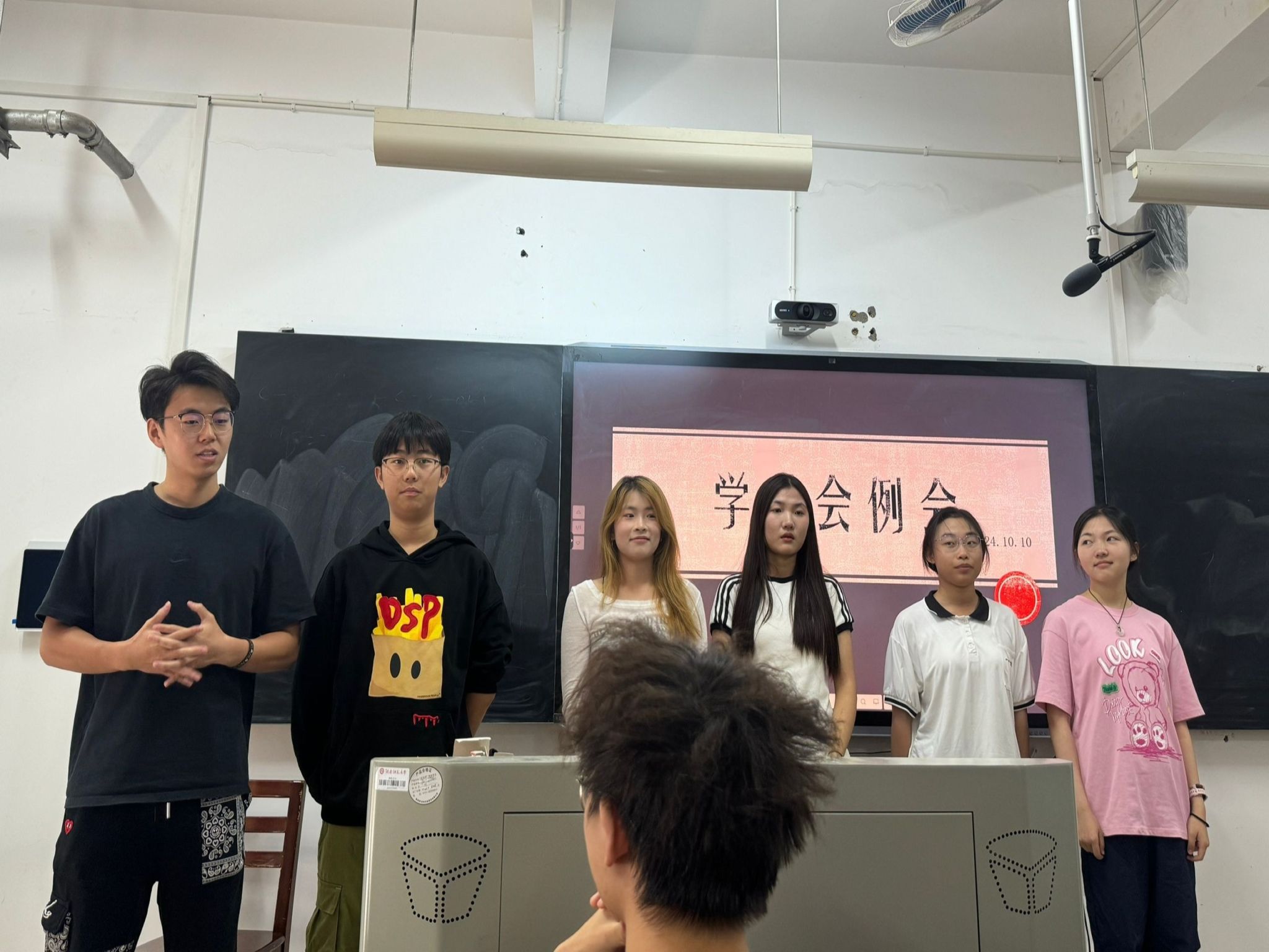 会议伊始,各部门依次上台自我介绍,汇报近期工作与下一步工作计划。办公室已完成第334期快乐周末谈活动,正在准备第335期快乐周末谈活动和学生会见面会;宣传部已完成多篇微推和说说的发布;学发部已完成书香班级智慧树的收集与张贴,并发出开展新老生交流会的通知,未来教育家活动正在进行;健服部正在进行双十精神卫生日的策划和“快乐元素”心理辅导室的装饰;权益部已完成国奖材料的收集,推荐名单已确认,审核已完成,同时正在策划“寝”拍独家宿舍生活小窍门视频和一往“寝”深宿舍全家福照片的征集活动;文体部已发送了迎新晚会第一次海选时间的通知和运动会运动员的招募通知,并且确定了“满‘新’欢喜,逐梦星程”的迎新晚会主题。主席团成员总结了近期工作,提醒各部门成员日常要讲究文明礼仪,并强调工作时要严肃,也希望全体成员热爱学生会工作,共同进步。