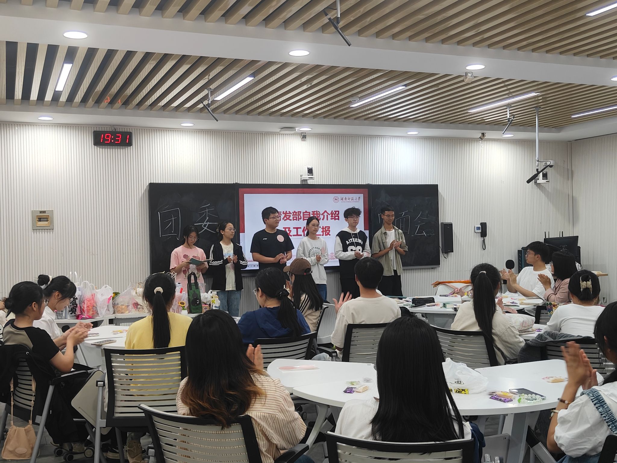 会议伊始,全体成员对团委各部门新干事表示欢迎,各部门依次进行了自我介绍,总结并汇报本部门九月份的工作内容和接下来的工作安排。各部门汇报完毕后,团委学生副书记周佳发言:上交和下达的文件要求逐级传达,并对部门文件要备份保存;建议各个部门积极通过微信公众号学习其他学校的优秀活动,主动为我们学院的活动进行创新;并对新入职的干事提出礼仪,思想觉悟,自身学习等方面的要求。此外,年级长兼团委学生副书记蔡紫婧对团委各部门工作进行了补充,并提出了几点建议:各部门成员对于通讯稿的书写要有新意,向微信公众号和今日头条借鉴经验;主动服务好被邀请出席活动的主讲人,并做好发言时的录音记录;各部门成员要保持思想纯洁,提高思想觉悟。