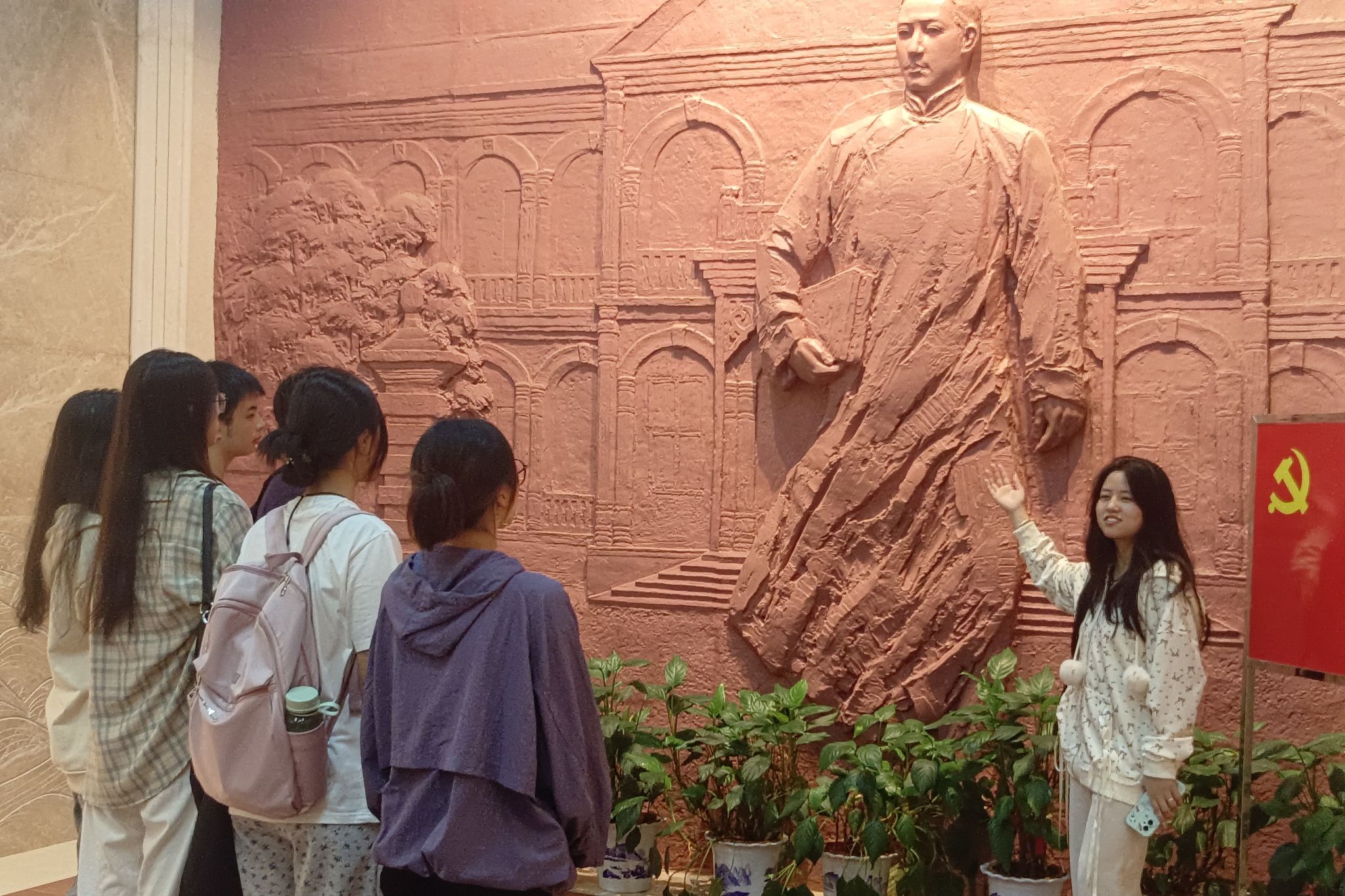 在团支书肖嘉晴的带领和讲解下,支部成员一起参观毛泽东与第一师范纪念馆,主要参观了“八班教室”、“八班寝室”、大礼堂、冷水浴的水井等青年毛泽东学习和生活的场景,了解青年毛泽东在第一师范的求学经历,以及这段成长历程对其革命思想和信仰的影响。参观结束后,支部成员在纪念馆附近的空旷场地进行集体交流分享,表达了为实现中华民族伟大复兴的中国梦而努力奋斗的决心。
