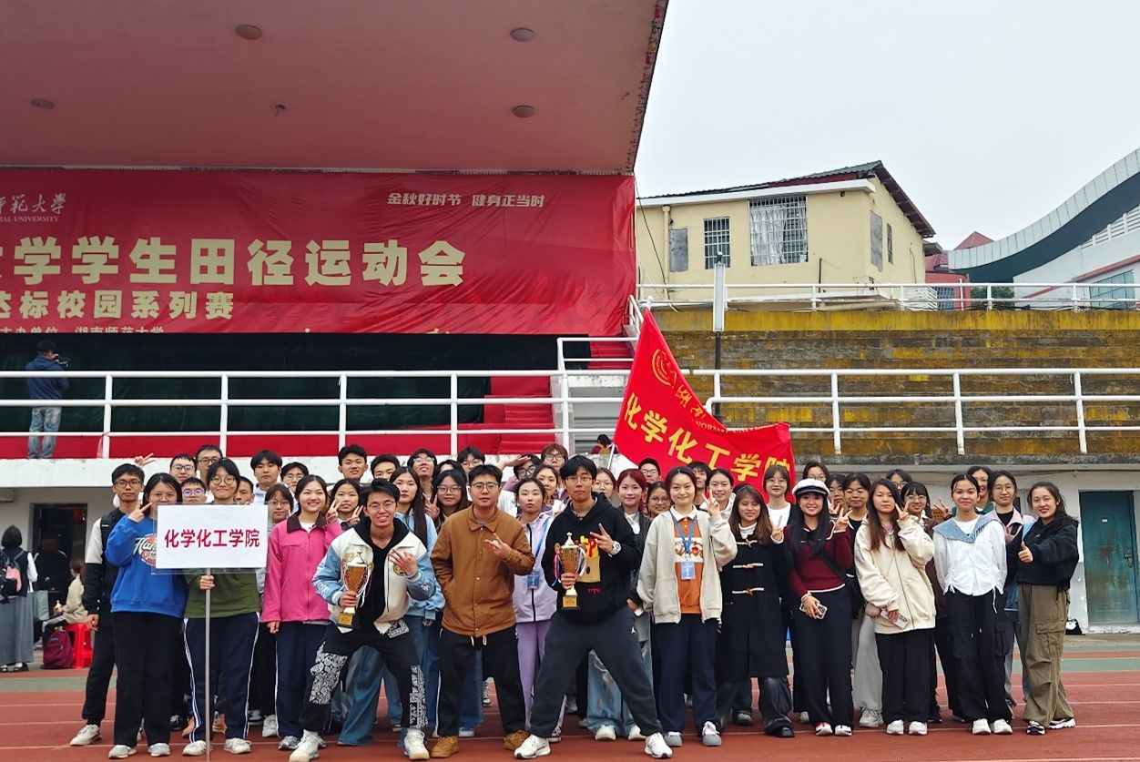 校领导在闭幕式致辞中代表学校向取得优异比赛成绩的团体和个人表示祝贺,向全体裁判员、工作人员表示感谢。化工院在此次运动会中夺得男子团体总分第三以及团体总分第三的成绩。2024级新生辅导员孙文涛老师亲临闭幕式现场为运动员们送上祝贺并与化工院的各位运动员以及工作人员合影留恋。