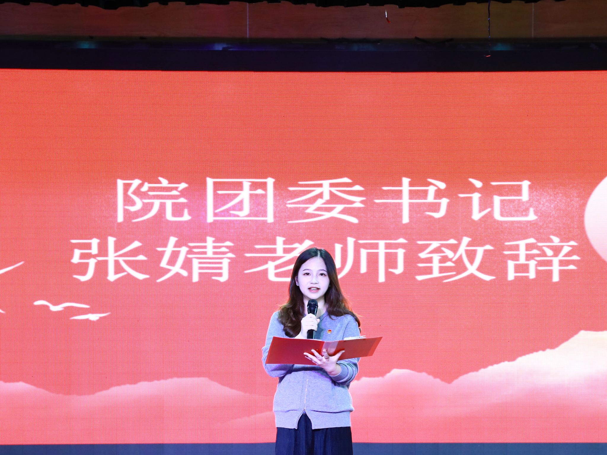 张婧致辞,她希望同学们通过“我的支部我的团”活动进一步加强各团支部之间的交流,增进团支部内部的组织凝聚力与创造力,并激励同学们做“眼中有光”“脚下有路”“肩上有责”的新青年,勇立潮头,勇担重任,用青春的力量书写时代画卷。