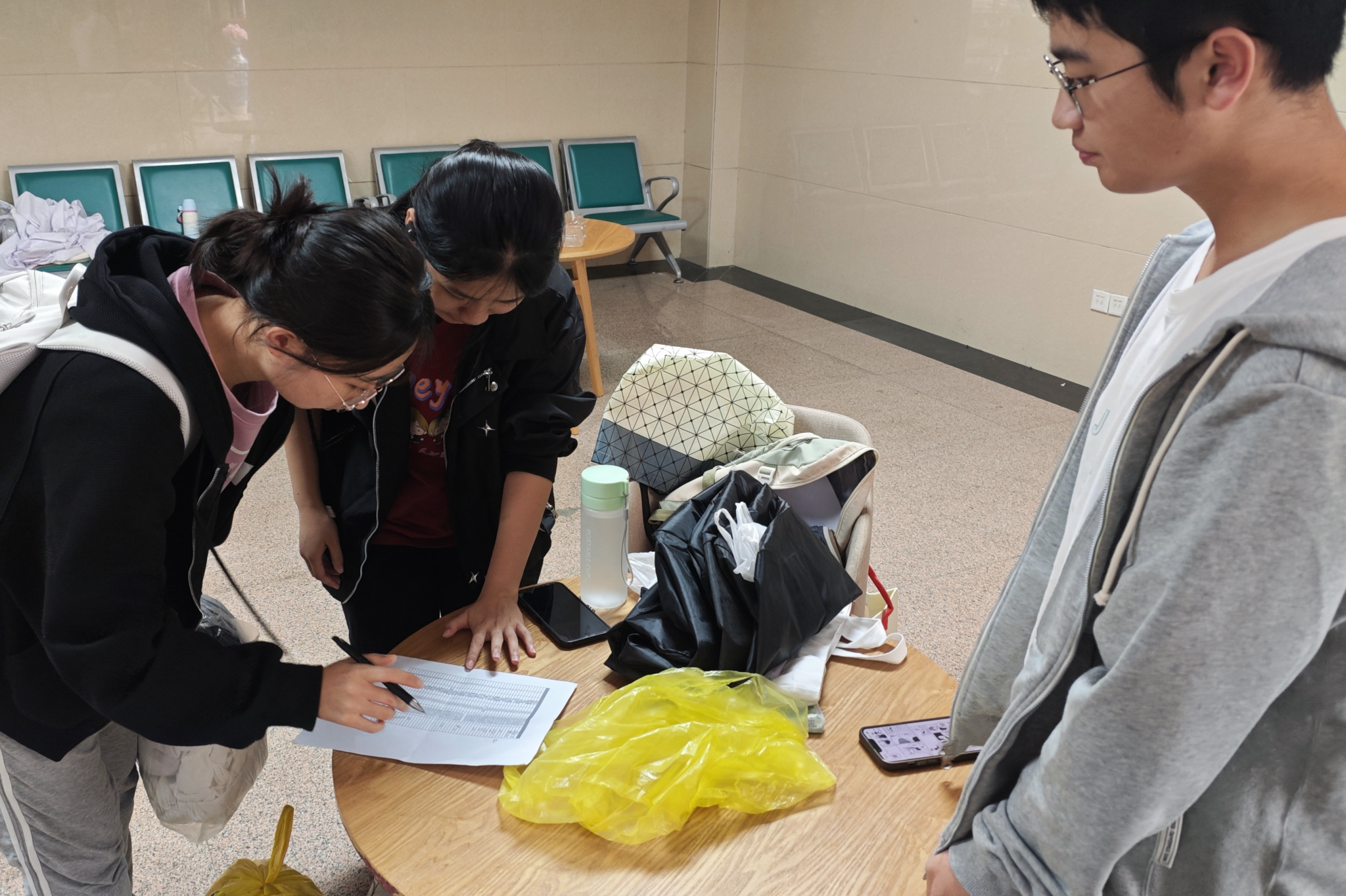 志愿者正在登记捐赠衣物数