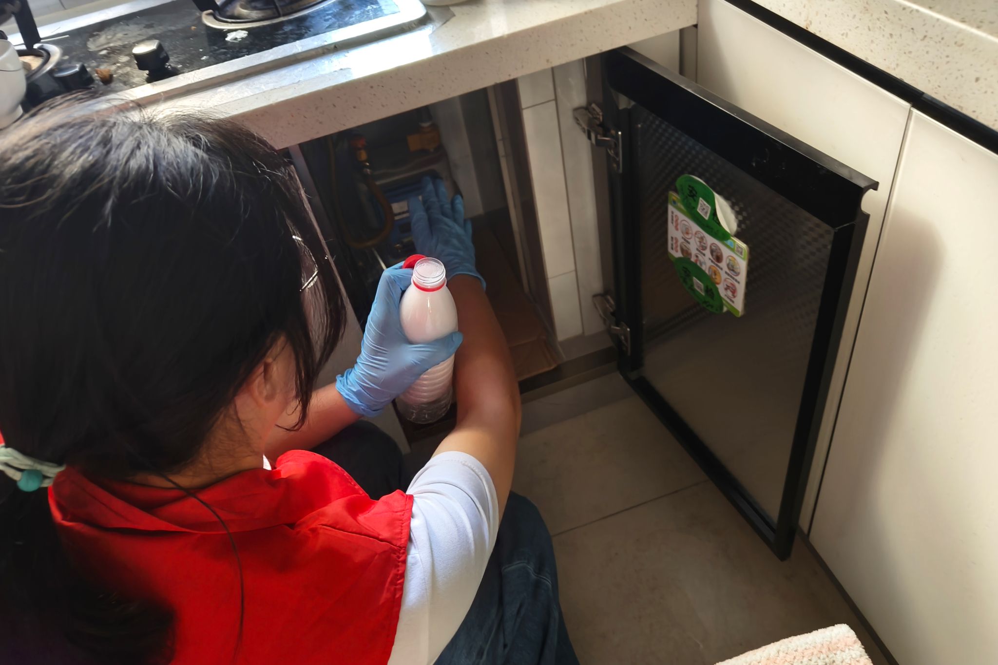 志愿者对居民家中天然气管道进行检查