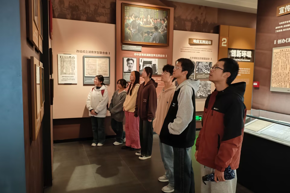 在青春奋进的征程中,红色文化宛如熠熠灯塔,指引青年前行。2309班等六个团校小组来到岳麓山寻访一代伟人的革命足迹,聆听有关岳麓山的红色故事。2402班等六个团校小组前往湖南烈士公园参观烈士纪念馆。它承载着厚重历史,铭刻着先烈们的不朽伟绩,各位学员不禁感叹于多位烈士的感人事迹。2409班等六个团校小组在新民学会成立会旧址瞻仰蔡和森同志故居、参观新民学会旧址陈列馆,认真听取专题讲解并驻足观看。发黄的旧照片和报刊展示出革命先辈对中国共产党成长壮大所做出的努力与贡献,雕塑及影像引领着大家学习革命先辈无私奉献、坚持不懈和艰苦奋斗的伟大精神。
