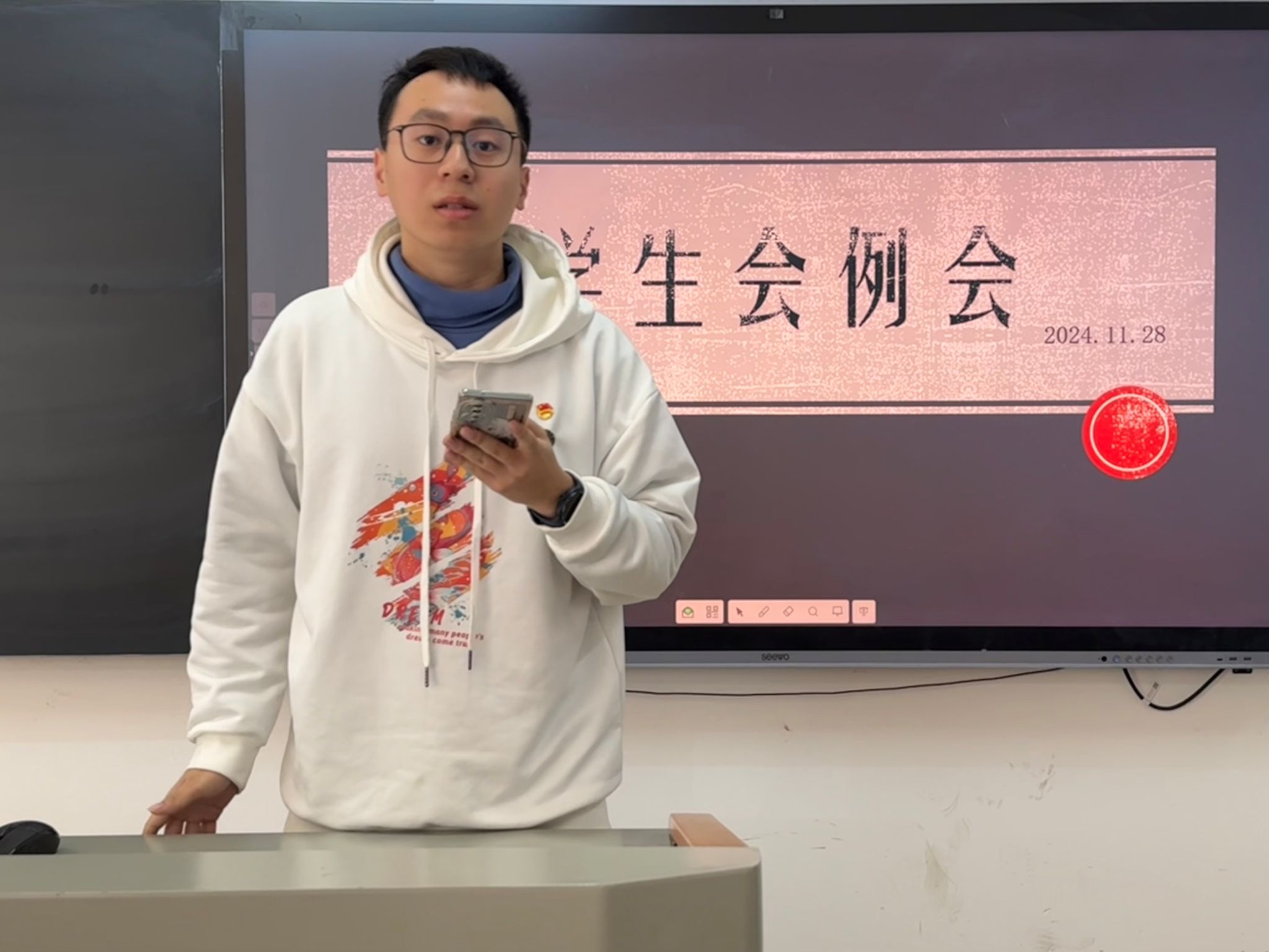 各部门工作汇报完毕后,主席团成员范俊开展了第48届学生会秋季理论思想培训大会。在此次会议中,范俊带领化工院学生会全体成员对微信推送《全国学联:清新阳光的学生会容不得颐指气使的“学生官”》以及《关于加强新时代新征程学联学生会工作的实施意见》(学发〔2024〕2号)》等6份文件进行了学习。在学习过程中,范俊认为学生会的职能定位是党领导下的学生组织,学生会组织要牢记为党育人,明确自身职能,服务同学需求,深化改革创新,建立信息公开制度,打造清新阳光学生会;学生会成员要加强对党团理论知识的学习,严格遵守法律法规,努力提升自身本领,积极关注学生需求,坚决抵制形式主义。
