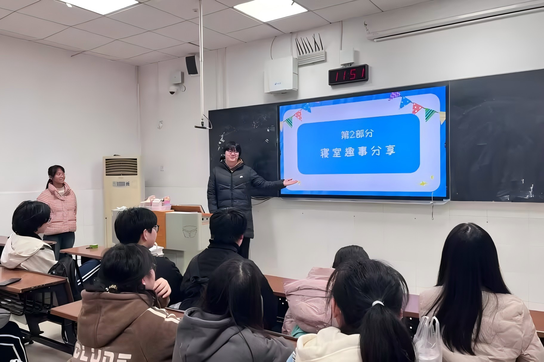 舒玉芝以“宿舍与趣事”为引,向大家介绍此次活动的主题与内容。各寝室代表向大家说明各自寝室的规章制度。在宿舍故事分享环节,王霄扬分享了学堂坡二栋321寝室的温馨小故事,而学堂坡一栋305寝室成员则通过表演来演绎了她们寝室的温馨故事。在互动小游戏环节中,宿舍成员间也配合默契,取得较好的成果。舒玉芝总结说宿舍生活是大学生活中必不可少的一部分,宿舍成员间要互帮互助,建设健康向上的宿舍文化。