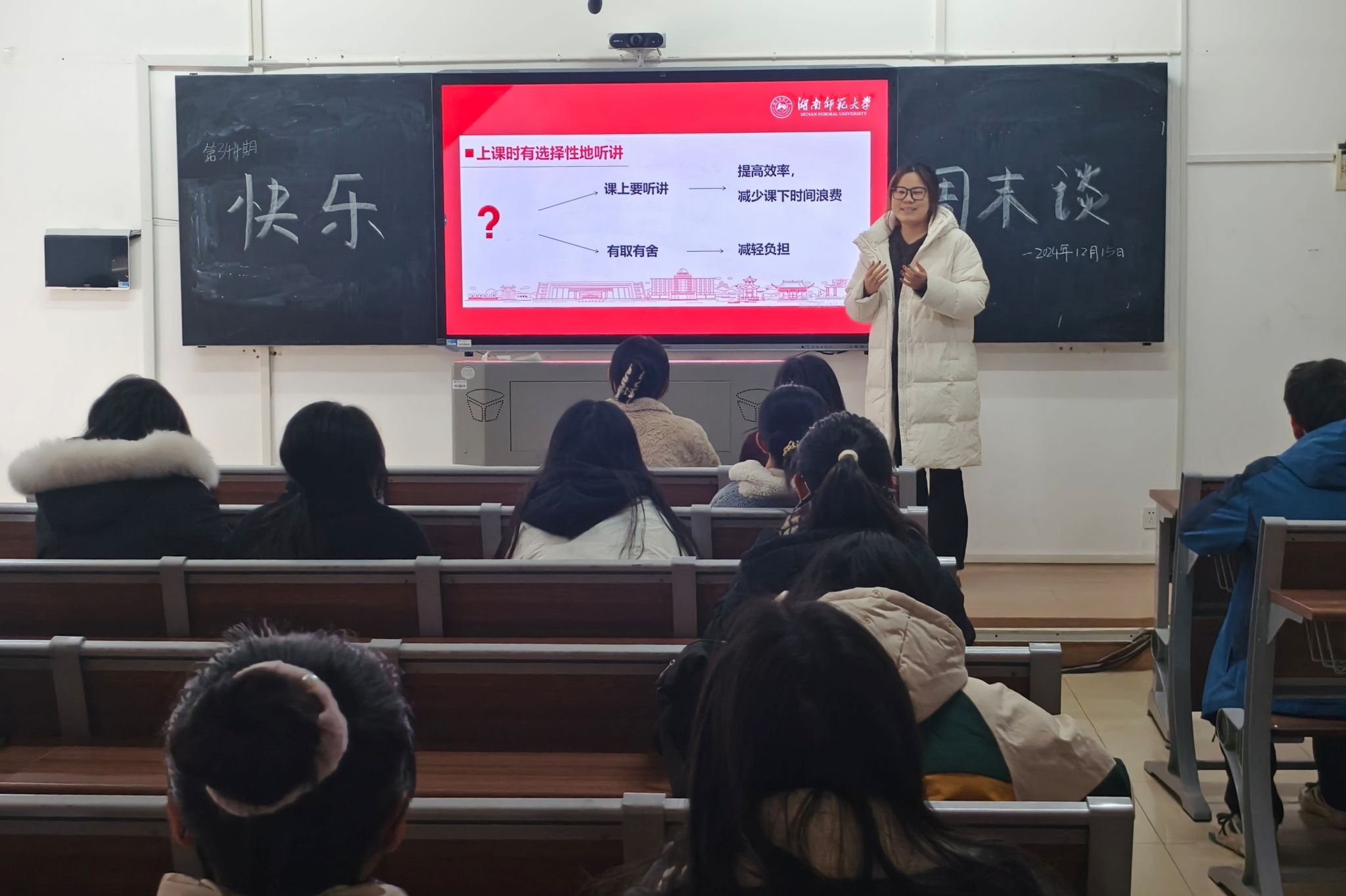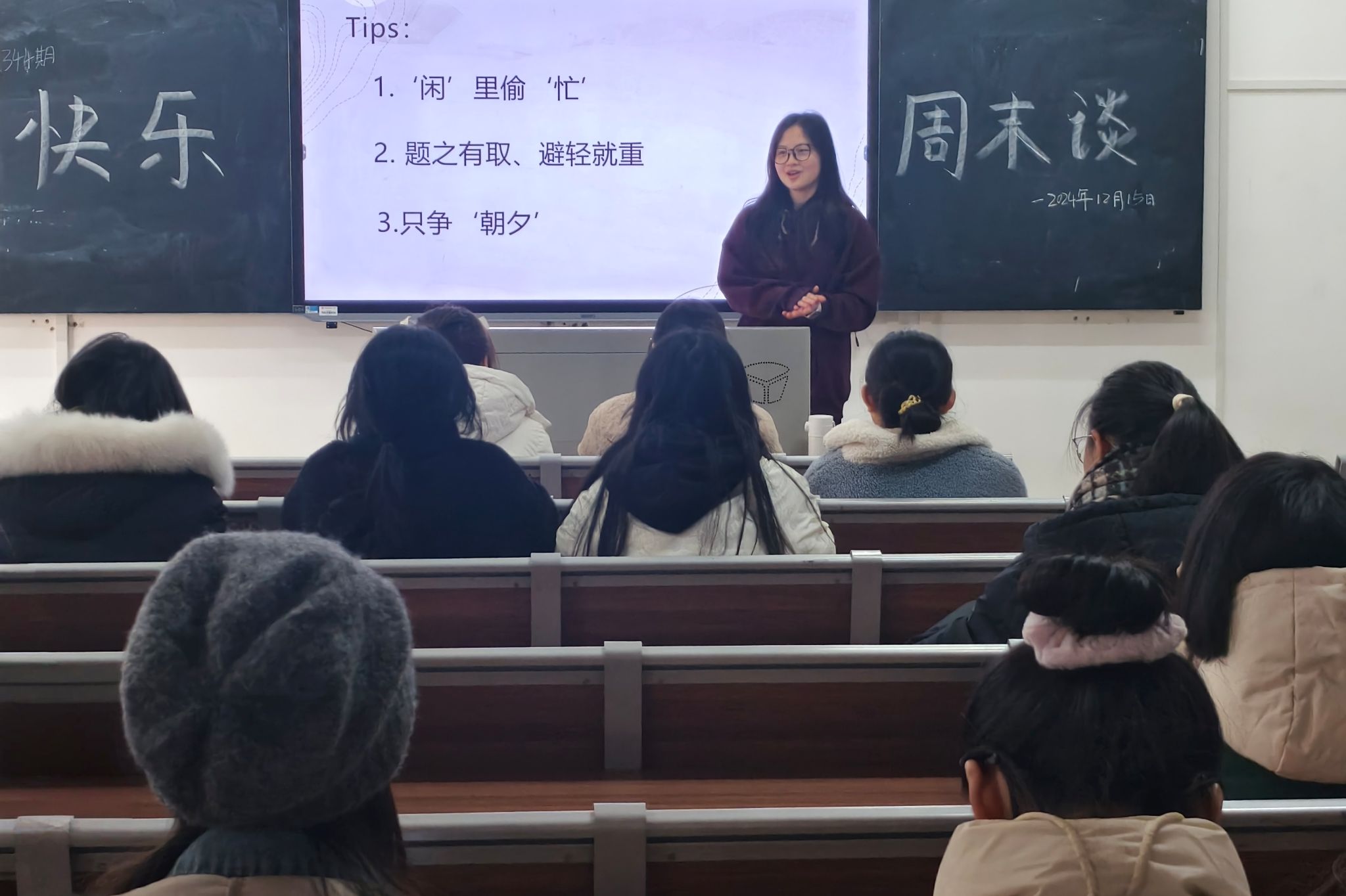 (通讯员 刘佳瑞)12月15日上午,英国365集团学生会办公室在化工楼117教室开展了第344期快乐周末谈活动,此次快乐周末谈邀请的嘉宾为2301班罗佳铭,2302班谭伟维,2306班邵菁逸,她们分别分享自己的期末复习备考或日常学习方法技巧,助力同学们顺利完成期末考试。