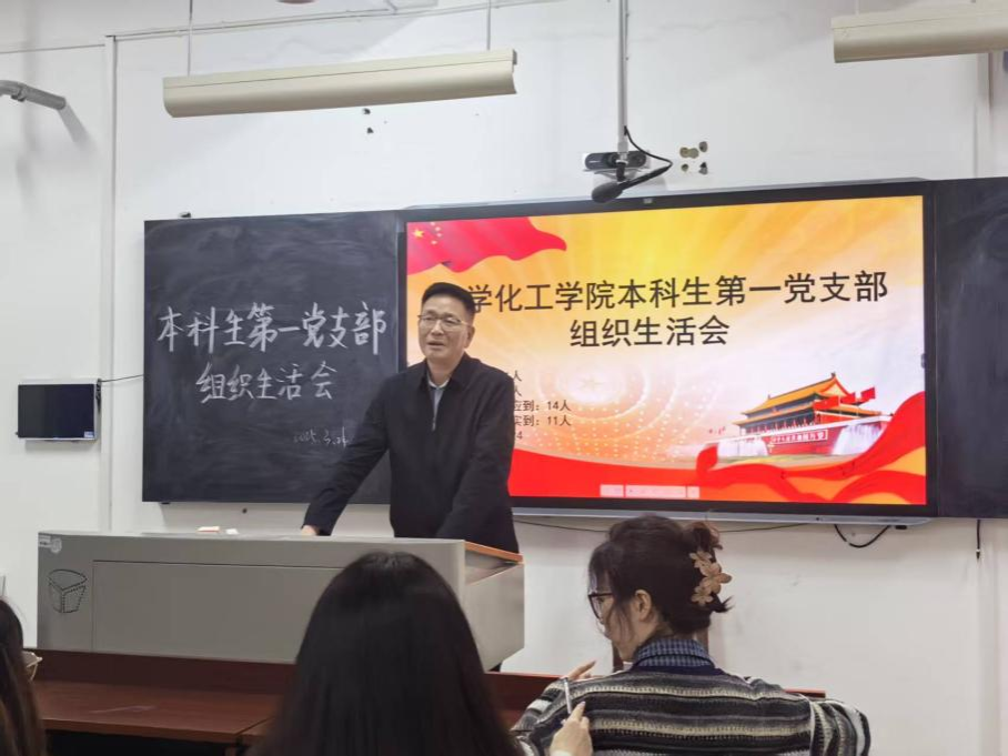 (通讯员 严瑾)3月26日晚,化工院本科生第一党支部召开2024年度组织生活会,院党委书记谭东波、支部第一书记孙文涛到会指导。会议由支部书记宓英华主持。