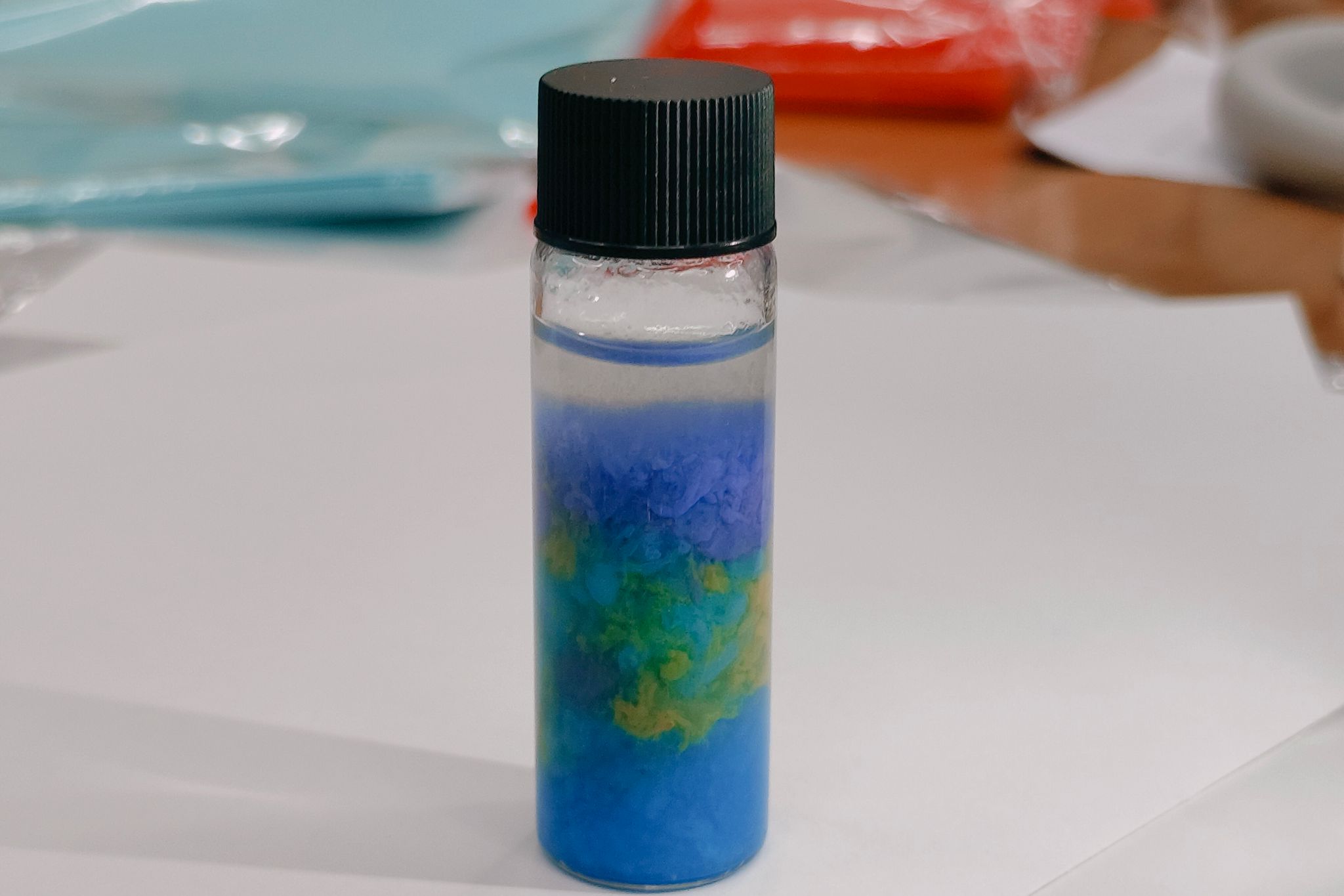 活动伊始,理事长蒋依欣向会员们详细讲解了“茶与墨”和“浪漫花园”实验原理。会员们亲自动手实验,目睹了茶水与氯化铁相遇瞬间变色的神奇过程:茶水迅速变成墨水模样,而当加入草酸后,“墨水”又奇迹般地变回茶水。 在“浪漫花园”实验环节,会员们看到铁离子、钴离子和铜离子分别与硅酸钠溶液在小玻璃瓶内发生反应,生成了不同颜色的沉淀。铁离子产生的沉淀是黄色,钴离子生成的沉淀呈现出美丽的紫色,铜离子的沉淀则是蓝色。这些沉淀在玻璃瓶内如同绽放的花朵,构建出一座色彩斑斓的“浪漫花园”。