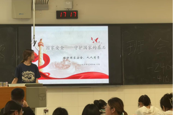 (通讯员 孟想)为深入贯彻落实总体国家安全观,增强学生国家安全意识,4月16日下午,化工院2404班围绕“国家安全——守护国家的基石”主题组织开展了国家安全教育主题班会。
