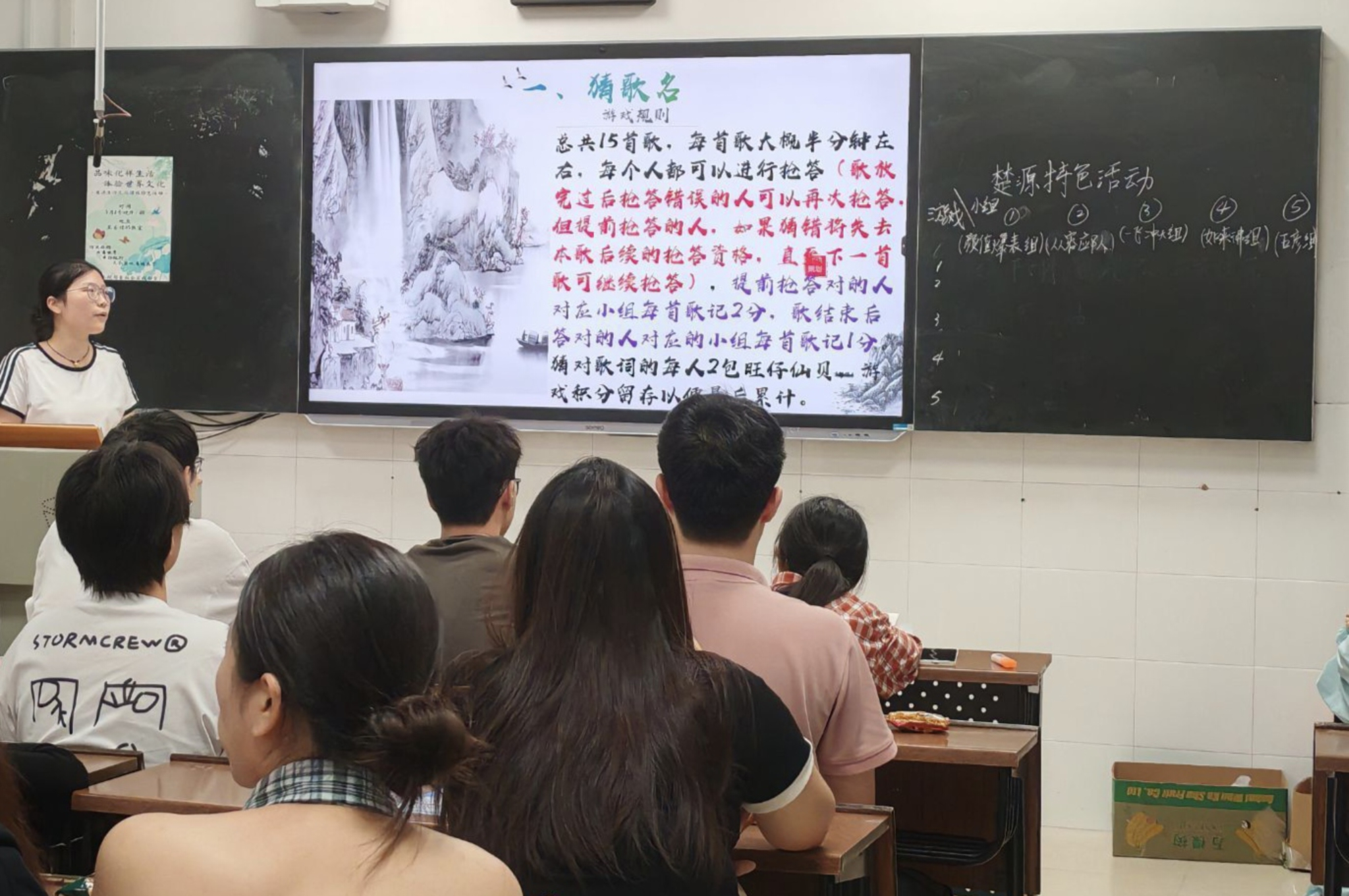 活动开场前,主持人播放轻快音乐,活跃气氛;工作人员精心布置场地,并为同学们分发小零食。活动采用小组合作形式。各小组迅速推选组长、确定组名,积极投入活动。