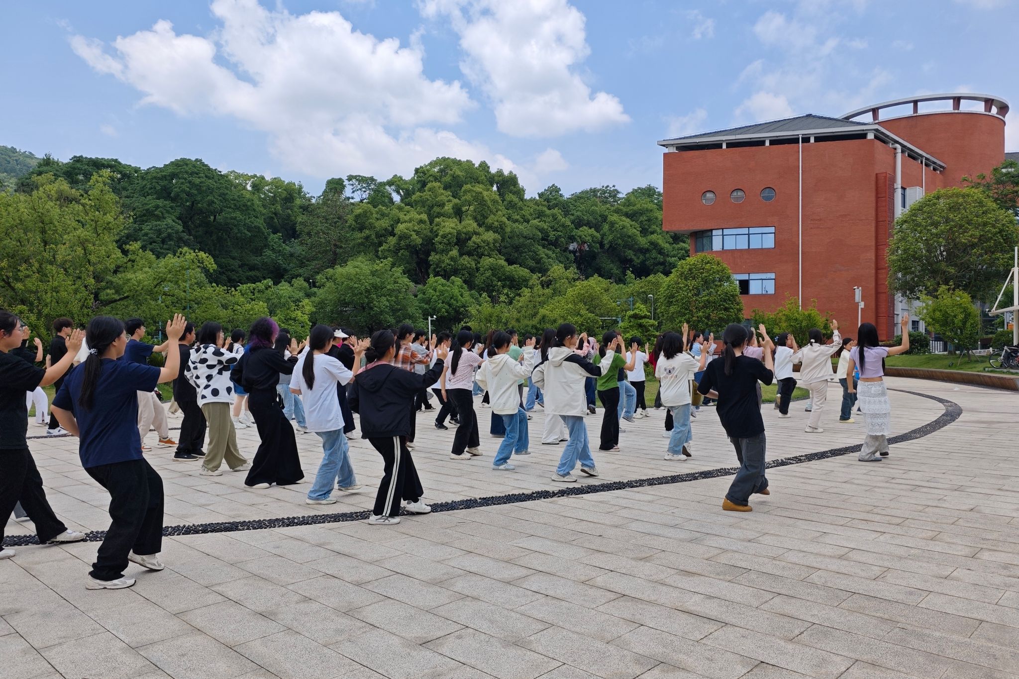 成绩的背后,是化工院学子们在烈日下的坚持与付出。训练期间,参赛成员们始终坚守。在训练中,参赛选手们不断校准姿势、精研细节。对于难度较大的招式,选手们相互研讨、彼此扶持、携手共进。特色方阵的舞者们亦在反复的练习中力求让每一个舞蹈动作与音乐节奏精准契合。