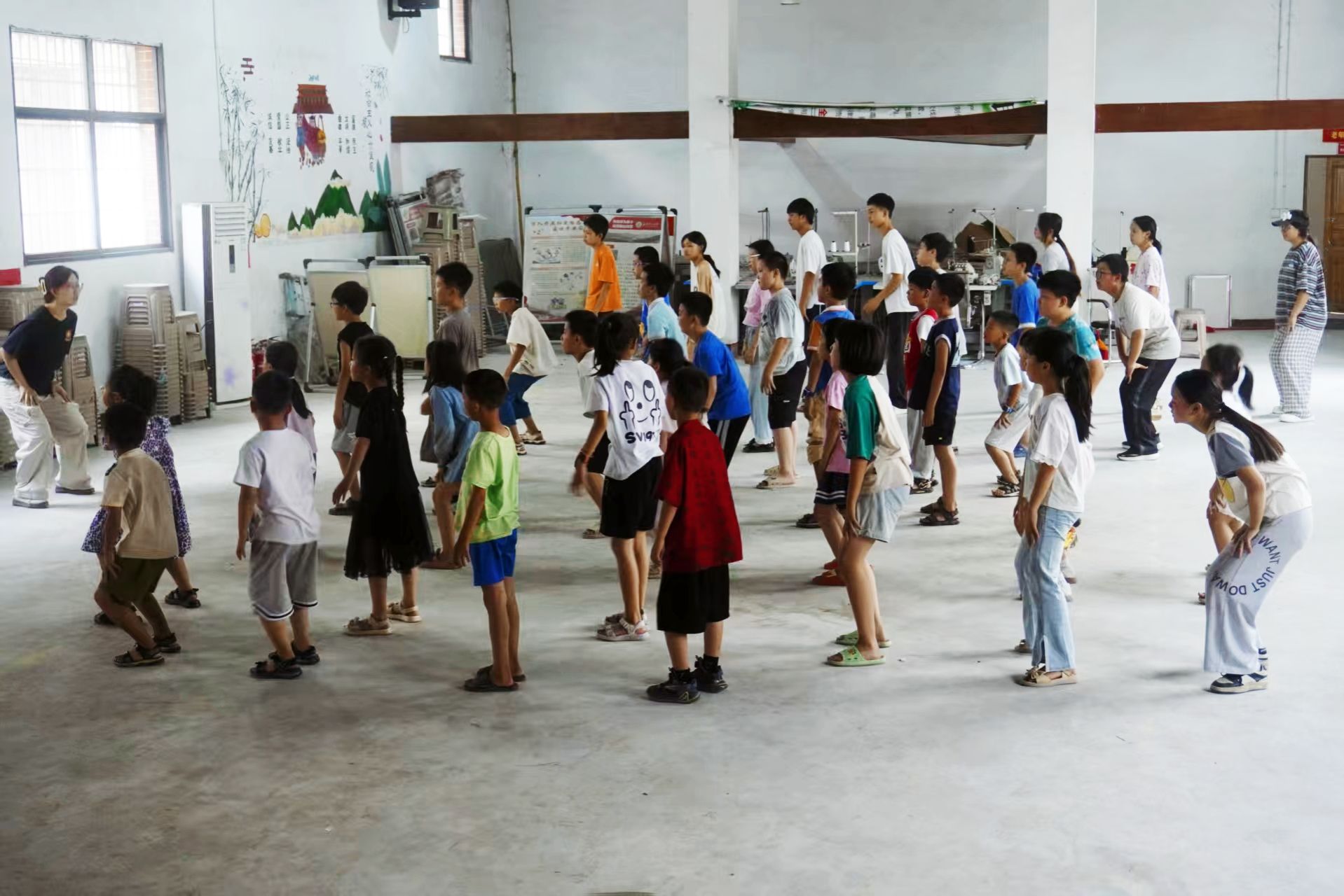 团队成员带领学生们跳健美操