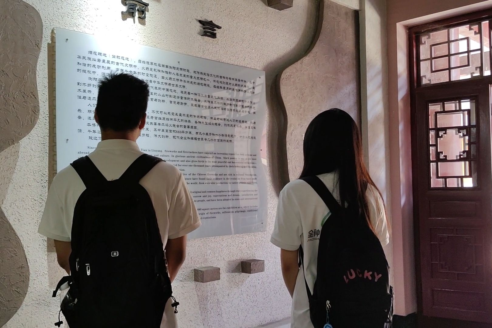 调研过程中,实践团调研组成员有序进入博物馆,系统参观了馆内“传统工艺”等九个展厅。在史料陈列区,成员们通过研读文献资料,结合展出的古老文物,了解浏阳花炮从起源到现代的千年发展脉络;在传统工艺展示区,调研组成员驻足于陈列的传统制造工具前,通过观察工具的形制与细节,探究花炮传统生产流程的繁琐与精细;在互动体验区域,成员们还共同走进“动漫影视厅”,观看花炮制作与传播的演示视频,直观感受花炮文化走向世界的历程。整个调研过程中,调研组成员始终保持专注,不时记录关键信息,就花炮技艺传承等问题进行了现场交流。